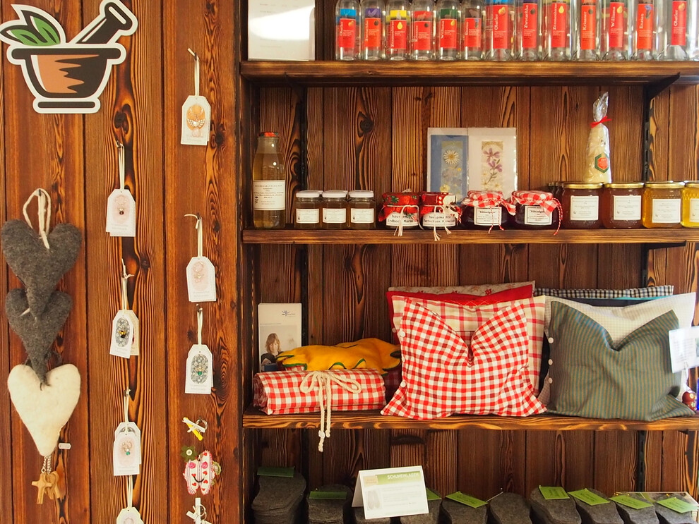 Regionale Produkte aus dem Montafon: Honig, Filzprodukte vom Montafoner Steinschaf, echte Bienenwachskerzen, Zirbenkissen, Kirschkernkissen, Dinkelkissen sowie Liköre