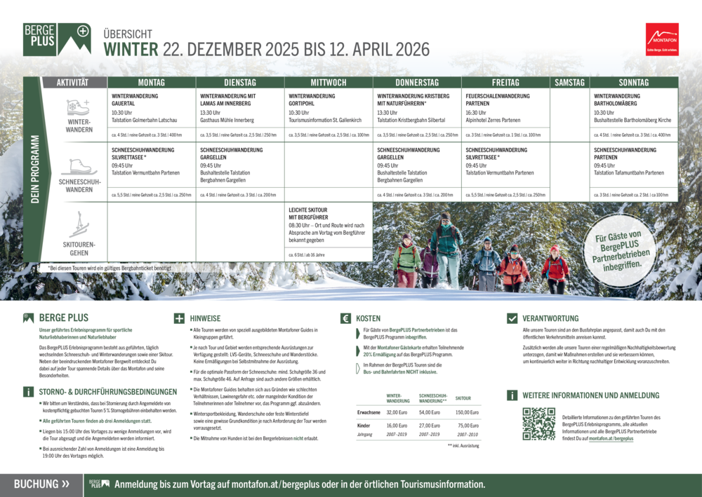 - Discounts (with Montafon guest card / as a guest in one of over 200 participating BergePLUS accommodations)
