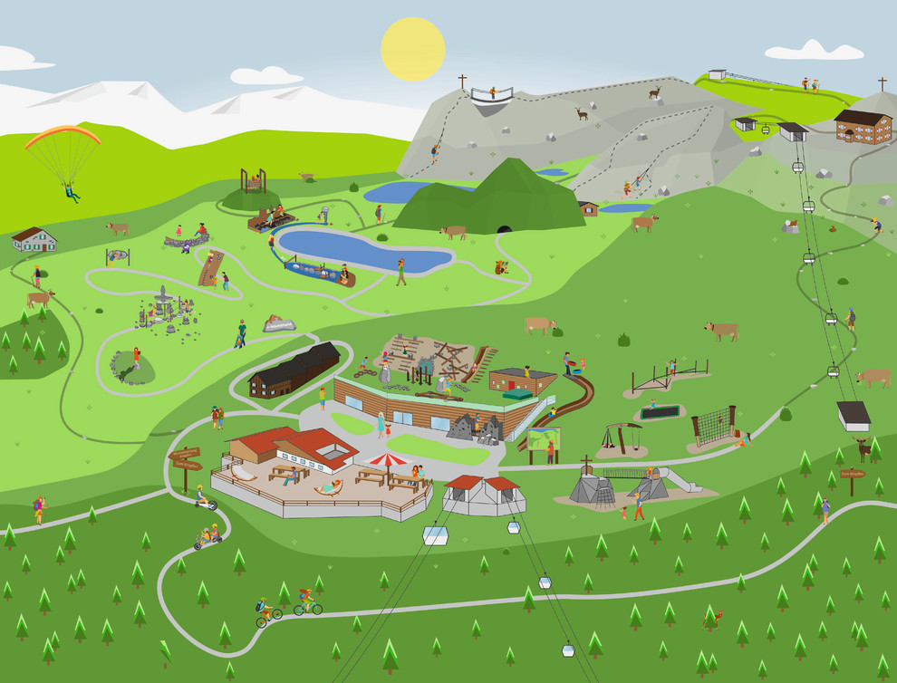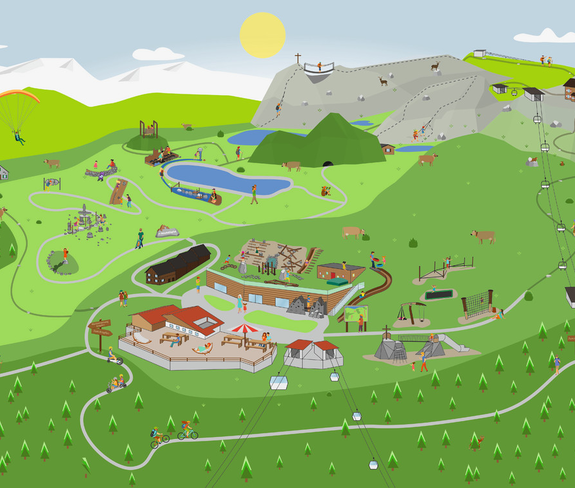 Zahlreiche Elemente des Abenteuerbergs Hochjoch sind bereits fertiggestellt. Spätestens ab Ende Juli kannst Du dann die gesamte Themenwelt erleben!