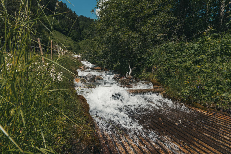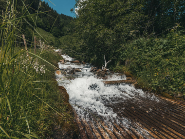 Bubbling and wild, calm and babbling – the element of water reveals its many facets on this hike in Tschagguns. The trail takes you past centuries-old alpine pasture landscapes, impressive reservoirs, and water-rich springs.
