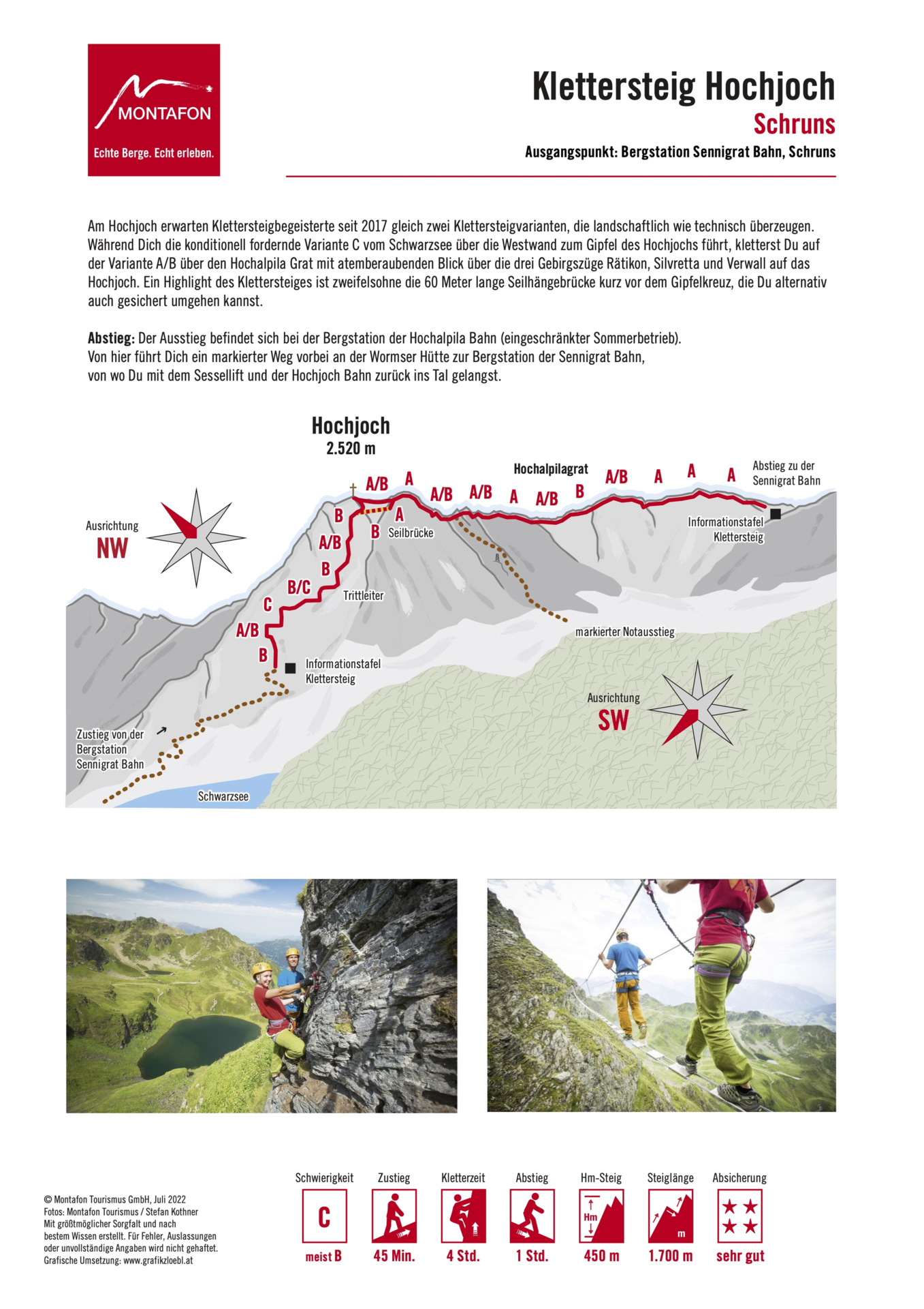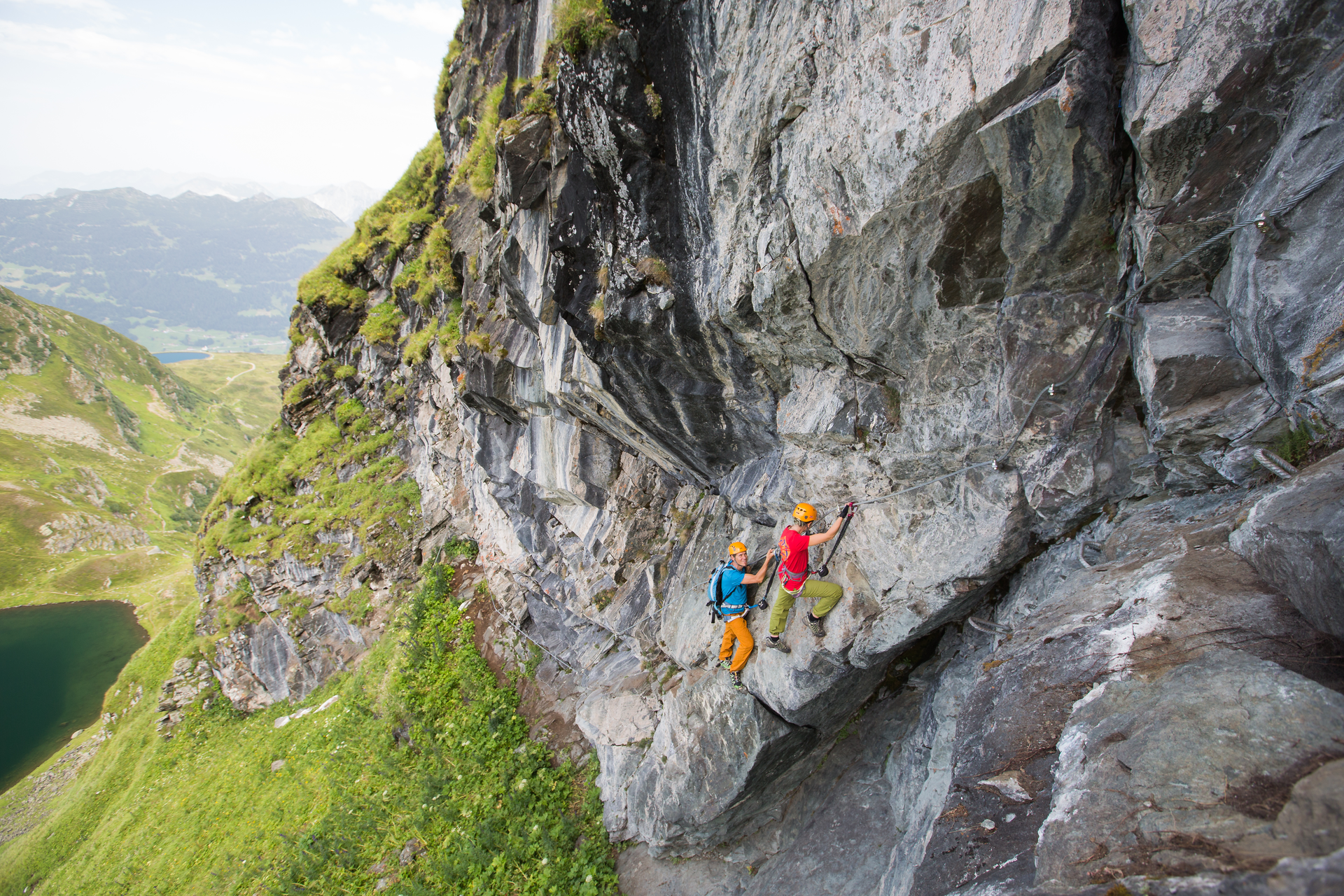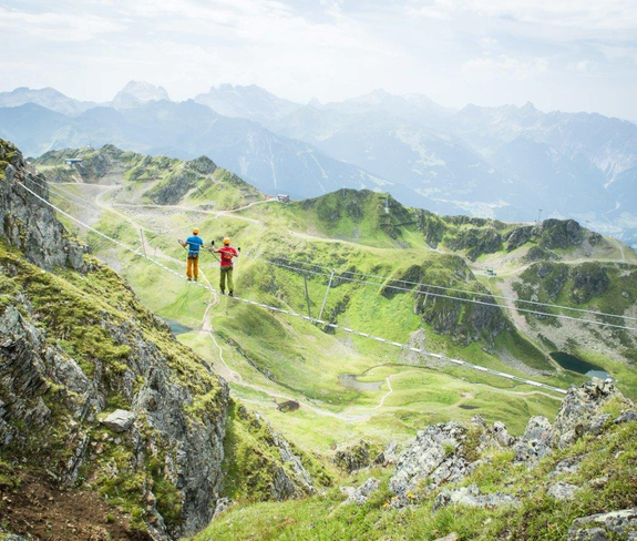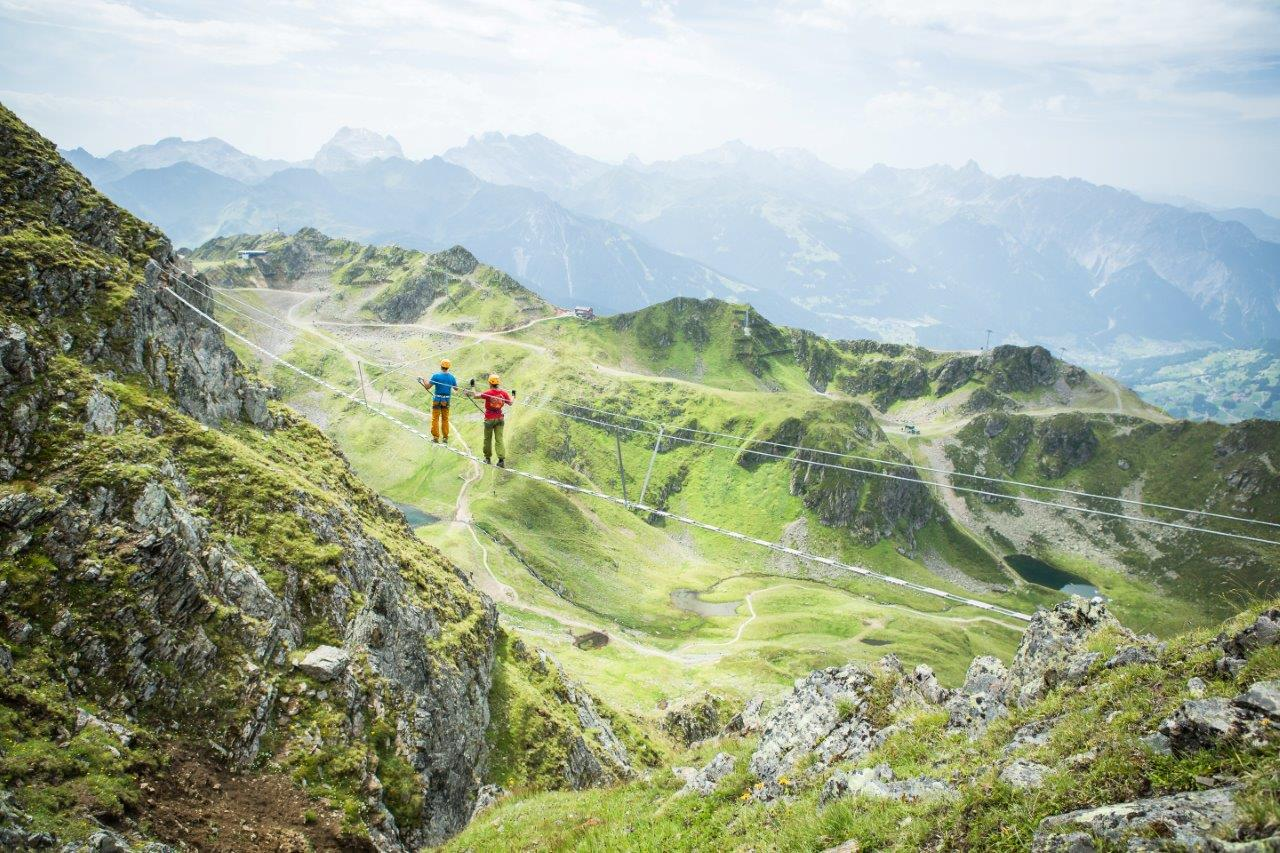 In variation 1 (difficulty level C), you climb along the longest via ferrata in Vorarlberg with a rope length of 1,750 m.