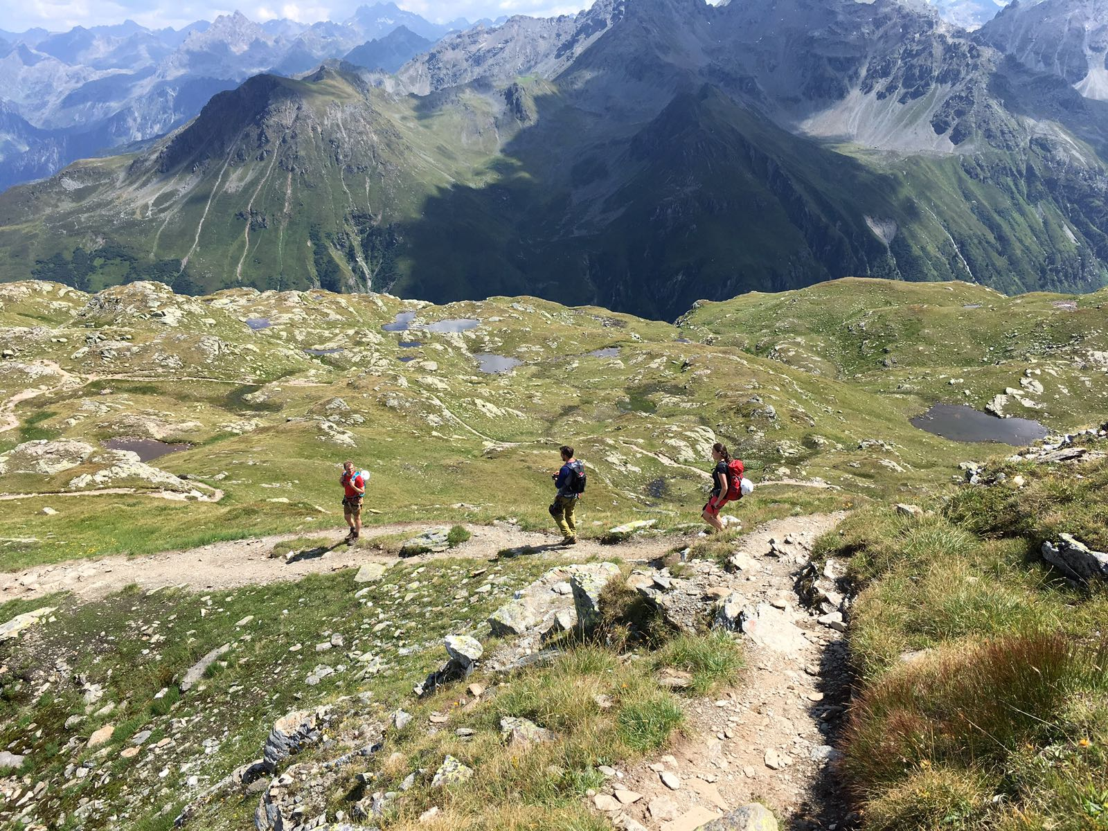 The descent to the summit station of the Versettla Bahn or to the Nova Stoba takes about 1.5 hours.