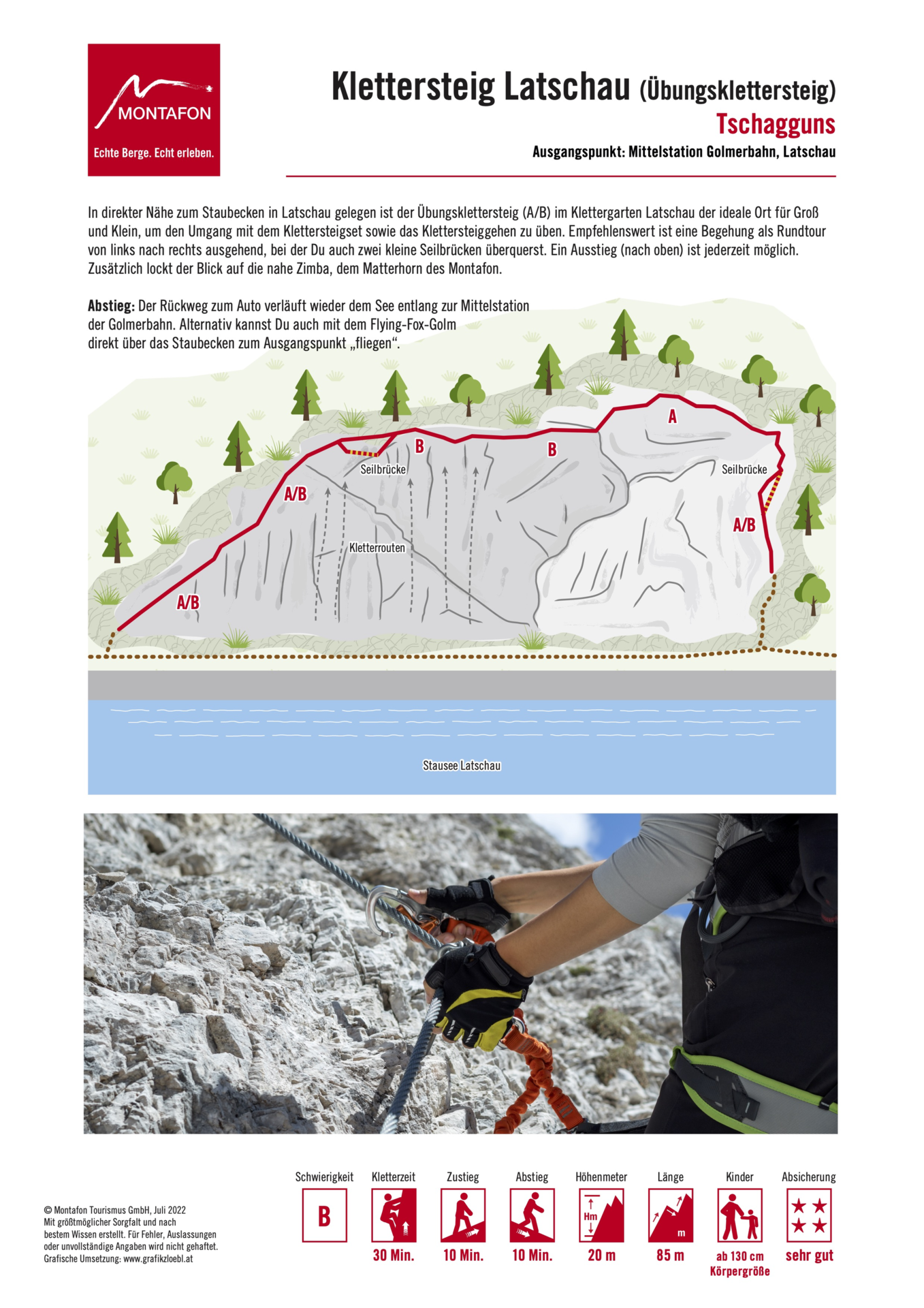 Leicht erreichbarer Übungsklettersteig direkt am Staubecken in Latschau, der auch für Anfänger geeignet ist.