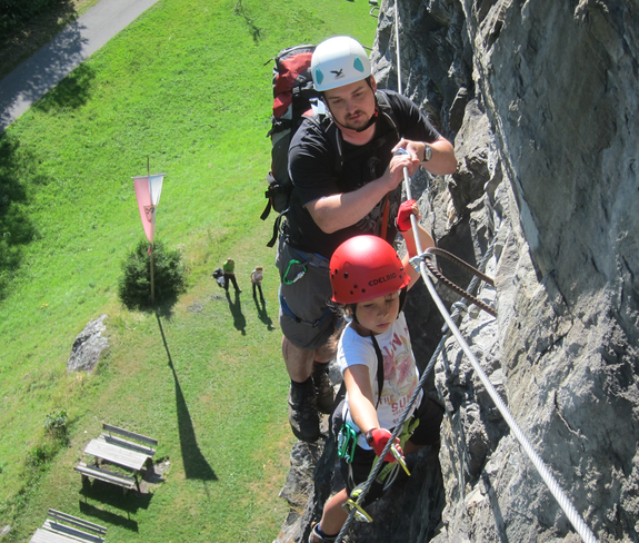 Next to the Rifa basin, between Gaschurn and Partenen, you will find the Rifa practice via ferrata in the eponymous climbing garden. With a well-secured beginner via ferrata A/B, it is ideal as a practice area for first experiences on rock – also suitable for children. Several variants in the C range promise variety for advanced via ferrata climbers. A highlight for everyone is certainly the suspension bridge as well as the impressive view of the Vallüla (2,813 meters) at the valley end of Montafon. Around the climbing garden, a spacious area with water playground, barbecue area, and more invites you to linger.