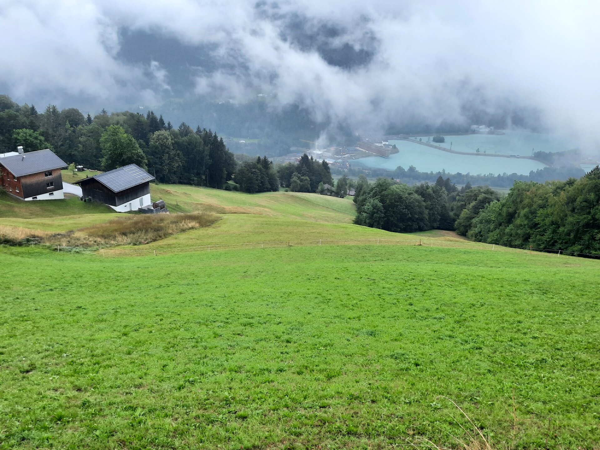 Nach dem Mountainbike-Verleih, was problemlos verläuft, startet Guide Michael mit mir gemütlich auf dem Radweg entlang der Ill im leichten Gefälle bis nach St. Anton im Montafon. So. Jetzt schaunmermal, wer mehr draufhat: die Waden oder der Knopf am linken Griff. Letzterer gewinnt. Der Tag ist ja noch lang ;). Nach ersten Kehren und einer langgezogenen Strecke nach Bartholomäberg blicken wir hinab ins Tal und entdecken Vandans mit dem imposanten Staubecken. Und dem noch imposanteren Bauwerk, das ins Staubecken hineinragt. „Alles Büroräume“, erfahre ich von Michael. Okay, da unten geht es ja auch um viel: Energie pur, wie ich später beim Schauraum Latschau noch erfahren werde.