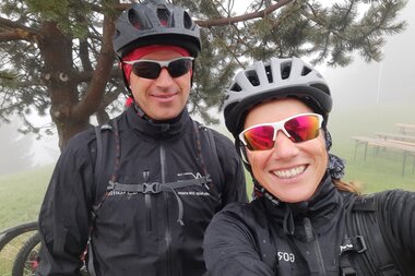 Wir drehen um. Problemzonen fallen nun mal ins Gewicht, und das sind nasse Füße im triefenden Schuh. Bei leichtem Regen mit Aussicht auf trockene Momente lassen sich Biketouren machen. Bei andauerndem Platzregen sieht es einfach anders aus. Schnell ist ein Plan geschmiedet: Am Sonntag soll die Sonne wieder scheinen. Michael hat für diesen Tag noch Kapazitäten … wie wäre es…