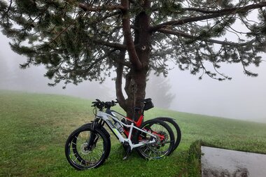Schönes Wetter kann jeder. Die mystische Stimmung im leichten Nass nach drei Monaten Trockenperiode hat hingegen ihren ganz eigenen Reiz. Aufsteigende Nebelschwaden, Wolkendecken und Nieselregen, der einem gar nichts ausmacht, wenn man den Turbo-Knopf bedient ;). Ein E-Mountainbike macht jede Strecke zum Genuss, selbst bei unbeständigem Wetter, denke ich.