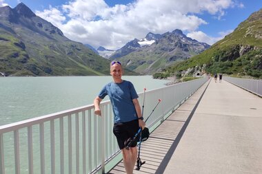 Einsame Almhütten säumen den Weg, einmal begleiten uns einige Kühe, die wirken, als ob sie sich verlaufen hätten. Die Umgebung leuchtet in allen Grün- und Brauntönen, die klare Bergluft lädt zum tiefen Einatmen ein. Immer wieder packen Teilnehmerinnen und Teilnehmer ihre Smartphones aus, um diese sagenhaften Natureindrücke als Bild einzufangen. Ich schnappe hier und dort Superlative in verschiedenen Sprachen auf und nicke wohlwollend. Was sich vor unseren Augen ausbreitet, lässt sich nur schwer in Worte fassen, viele sind sprachlos und überwältigt.