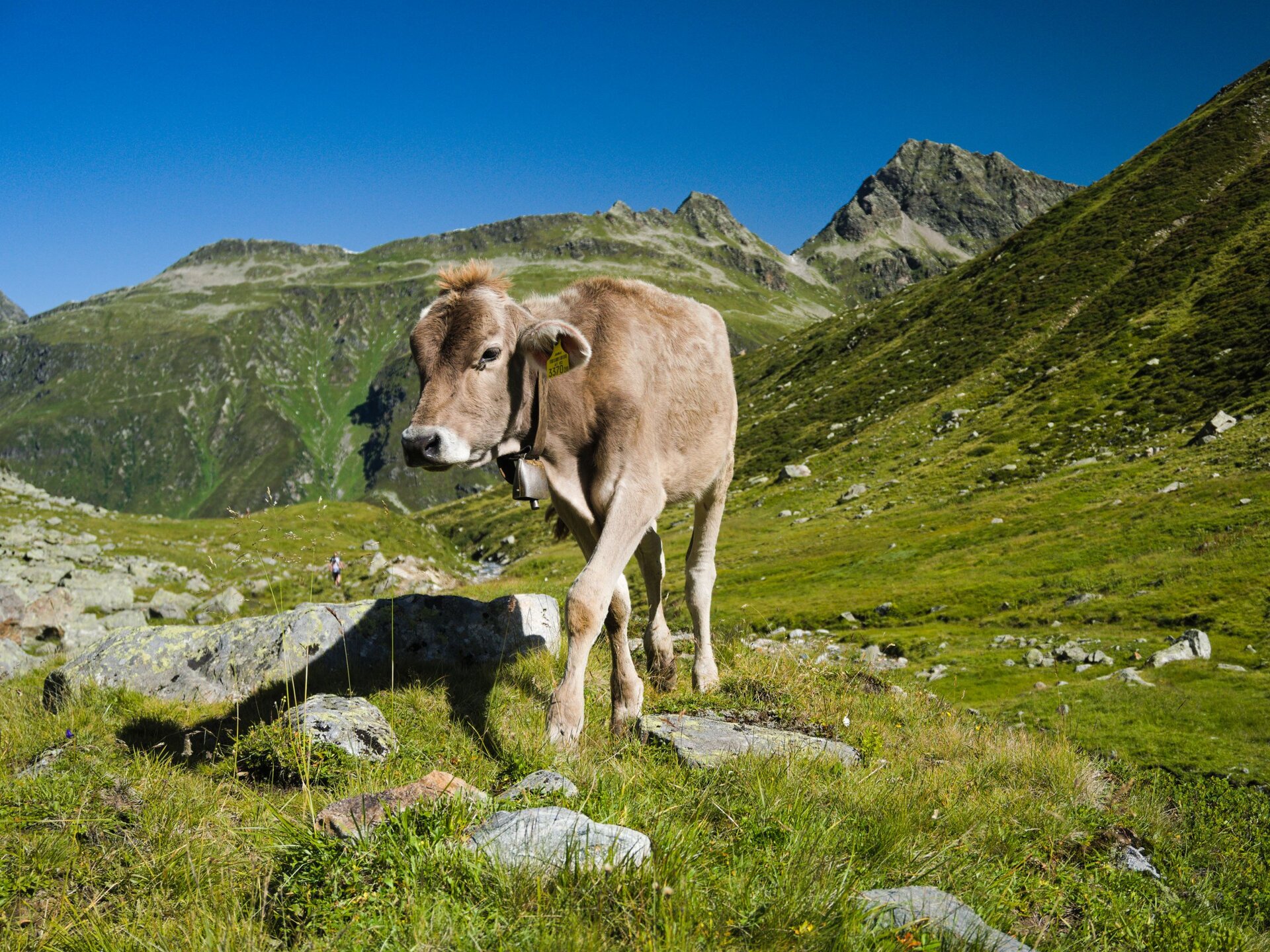 Kleiner Fun Fact: Ein altes Schild informiert uns darüber, dass wir uns am Radsattel auf der Grenze zwischen Tirol und Vorarlberg befinden. Wir setzen uns auf der Wiese in Vorarlberg und machen Pause. Ich kann mir an der Aussicht gar nicht sattsehen. Vor uns liegt das Ochsental und dahinter glänzt der Gletscher in voller Pracht. Hoch über den Schnee thront der höchste Berg Vorarlbergs: der Piz Buin. Zusammen mit einigen anderen Berggipfel wie das Silvretta Egghorn, das Signalhorn und das Silvrettahorn formt der Berg eine massive Wand. Wenn wir ganz genau hinschauen, sehen wir, wie eine Seilschaft langsam den Gletscher quert. Eines Tages komme ich zurück und laufe dort auch über den ewigen Schnee, träume ich. Ehrlich gesagt, hätte ich an diesem zauberhaften Ort wohl ewig verweilen können.