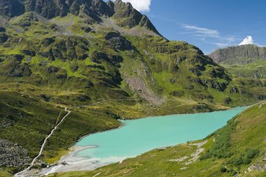 Start der Wanderung am Silvrettasee