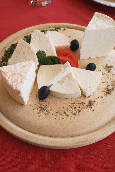Worauf sich die gesamte Crew auf der E-Bike-Tour am meisten gefreut hat? Gute Frage! Die Antwort kommt von allen wie der Blitz geschossen: Auf die Brotzeit mit frischem Montafoner Sura Kees! Vom Senn Christoph, der gemeinsam mit seiner Frau Magdalena hoch oben im Montafon den Käse produziert. Mit einem herzlichen „Grüaß Di, wia goht’s?“ empfingen uns die Hüttenleut‘. In der Hand ein ofenwarmes Brot, belegt mit frischem Sura Kees. Herrlich! Dazu ein Glas Buttermilch – da kann man nur noch sagen: „An Guata!“