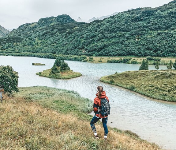 Das Programm für die drei Tage ist wirklich vielversprechend: ein Klettersteig, eine Wanderung und eine E-Bike-Tour sind geplant. Im Montafon angekommen sollte aber der Wettergott unsere Pläne durchkreuzen. Dicke Regenwolken ziehen auf und die Klettersteigtour fällt somit im wahrsten Sinne des Wortes ins Wasser. Doch zum Glück bietet das Montafon genügend Schlechtwetteralternativen. Wir machen uns auf den Weg, um bei einer kleinen Wanderung die Gargellener Fenster zu erkunden. Mit viel Aufwand wurde hier ein Wanderweg durch den Wald angelegt, der immer wieder wunderschöne Ausblicke auf das Dörfchen Gargellen freigibt. Der Weg lädt dazu ein, die Natur zu genießen und Neues zu entdecken. Und die uns umgebenden Berge strahlen durch die tiefhängenden Wolken eine mystische Stimmung aus.