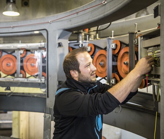 Deren Qualität und Sicherheit haben bei den Montafoner Bergbahnen oberste Priorität. Daher werden die technischen Anlagen laufend überprüft. Bei den großen Revisionen nach der Saison kontrolliert, reinigt und ersetzt bei den Gargellner Bergbahnen ein Team von 10 Mitarbeitern die verschiedenen Teile aller Anlagen. „Unsere Kabinenbahn, die auch im Sommer im Betrieb ist, geht während der Betriebspause zweimal pro Jahr in Revision und die Sportanlagen, die nur im Winter laufen, einmal jährlich“, berichtet uns Manuel Stross, der stellvertretende Betriebsleiter der Gargellner Bergbahnen, die allein in der Wintersaison ca. 2 Millionen Gäste transportiert. Seit 2012 ist der gelernte Elektriker dort tätig. „Neben unserern eigenen Revisionen gibt es noch viele weitere externe Überprüfungen“, ergänzt er.