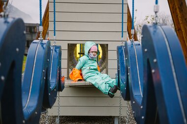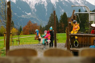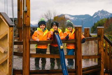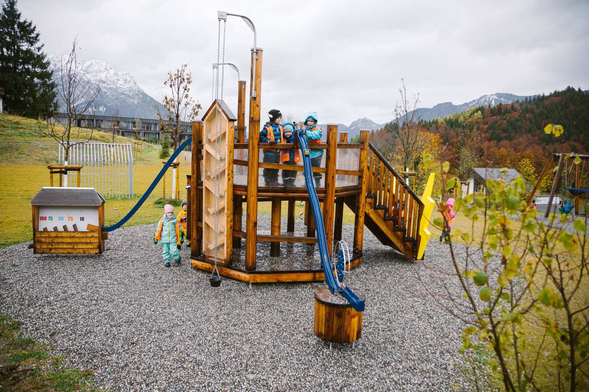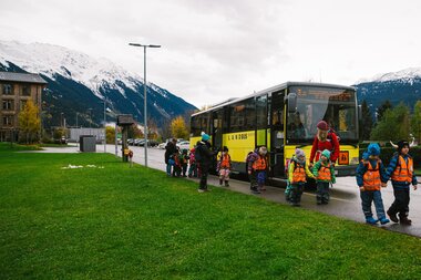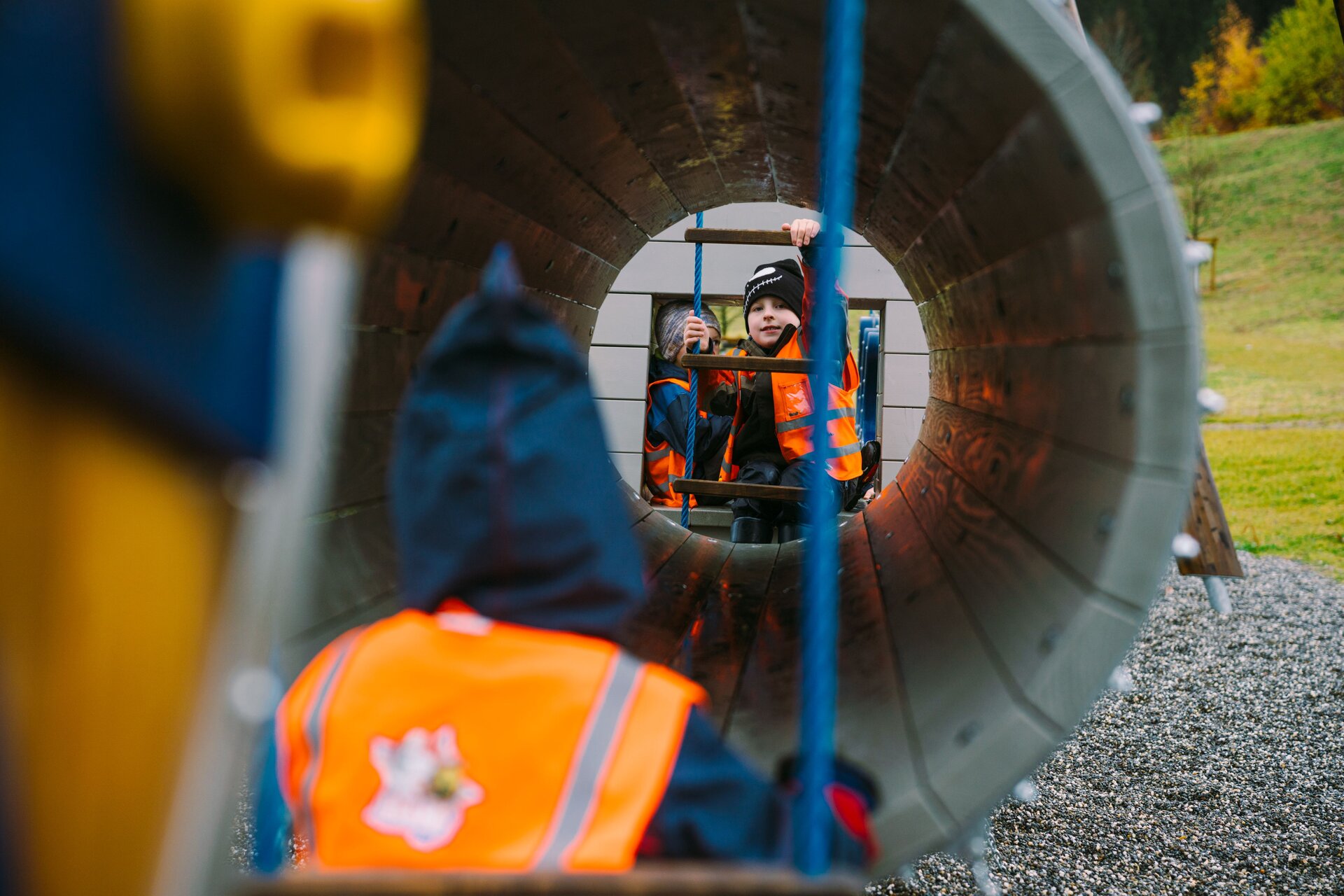 Regenwetter im Montafon? Kein Problem für die abenteuerlustigen Kinder des Kindergartens Bartholomäberg. Trotz grauer Wolken und Nieselregen machten sich unsere kleinen Entdecker der beiden Gruppen „Hennatschätter“ und „Steböck“, ausgerüstet mit Regenjacken und -stiefeln, auf den Weg zum Spielplatz in Latschau. Dieser wurde vom Hotel Falkensteiner erbaut. Dank des MBS Busses wurde die Fahrt durch die malerische Landschaft bergab und bergauf zu einem eigenen Erlebnis.