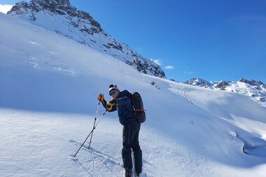 Was ein Tag! Der Schnupper-Skitourentag ist für alle, die einen Einblick in das Skitourengehen erhalten wollen. Dabei ist es egal, ob man Neuling ist, Kenntnisse auffrischen oder einfach mal einen entspannten, perfekt organisierten Tag im Off rund um die Bielerhöhe erleben will. Was zählt, sind die Leidenschaft für Natur und Wintersport, Geselligkeit und die Neugierde auf Neues. Mit der Gefahr, dass das Skitourengehen der Beginn einer neuen Leidenschaft wird.