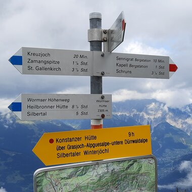 Wie wäre es, eine spannende Halbtages-Wanderung zu unternehmen, um am Nachmittag noch etwas Zeit zu haben – für weitere Aktivitäten, Bummeln oder einfach nur, um die Beine genießerisch in die Vertikale zu legen? Ist eine rund 3-stündige Tour dann aber nicht eher langweilig? Ich wollte es wissen und habe mich im BergePLUS-Programm für die Wanderung auf die Zamangspitze angemeldet. Treffpunkt: Grasjoch Bahn in St. Gallenkirch.