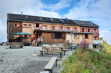 Schon bald erreichen wir die gemütliche Wormser Hütte, vor allem das obere Stockwerk mit den Zimmern und Matratzenlagern sind laut Alfred noch richtig urig. Mein Kopfkino läuft wieder an, als ich vom rund 8-stündigen Hüttenübergang Wormser Hütte zur Heilbronner Hütte erfahre.