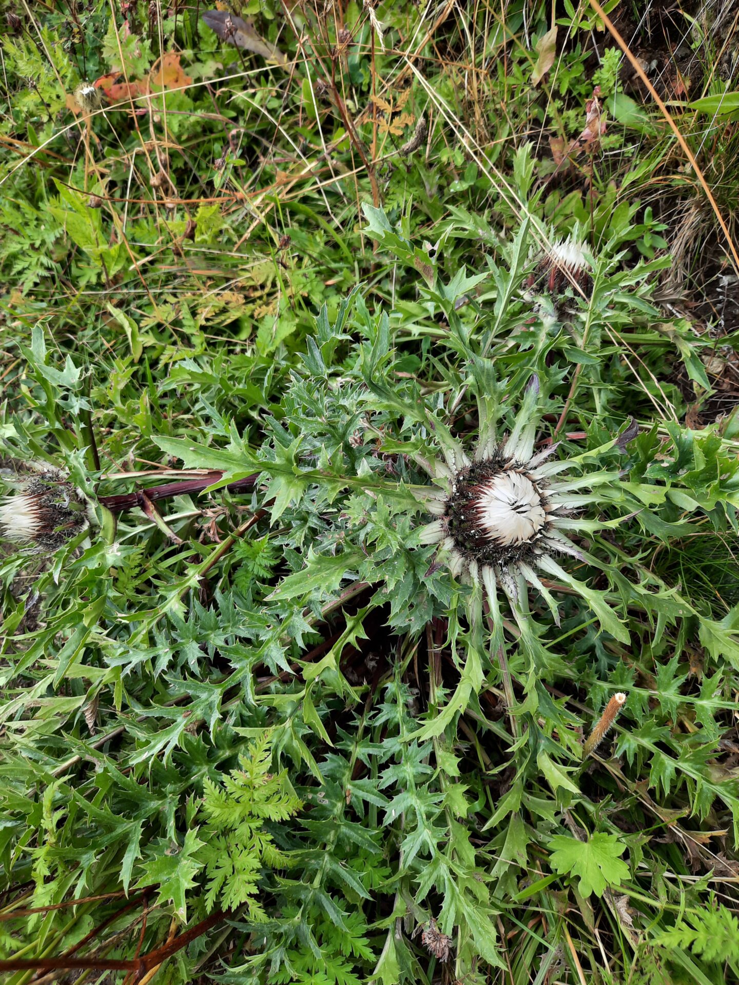 Wir schauen direkt unter uns und erkennen den gut begehbaren schmalen Pfad der roten Variante. Gegenüber im Sonnenlicht das Gargellener Tal, die Straße schlängelt sich hier zwischen sattgrünen Wiesenstreifen und jede Menge Bächen hinauf zum markanten Massiv der Madrisa. Rechts davon eröffnen sich Panoramablicke auf die Sulzfluh, die Drei Türme hingegen, denen man bei der Gauertaler Schneeschuhtour nahekommt, bleiben versteckt. Es ist Zeit für den Abstieg … und die Farben Gelb, Rot und Blau begegnen uns prompt wieder. Diesmal lebendig, als Blutwurz, Alpendistel, Preisel- und Heidelbeeren (wie man Letztere von Rauschbeeren unterscheidet, habe ich schon auf meiner Wanderung aufs Muttjöchle erfahren ;)).