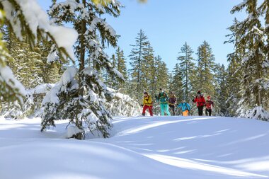 Was die Teilnehmer am meisten an den Schneeschuhwanderungen im Rahmen des Gästeprogramms BergePLUS begeistert, liegt für Romy klar auf der Hand. „Das ist sicherlich die Stille auf dem Weg durch den Wald oder auf einen Gipfel in beeindruckender Bergkulisse. Die Gäste können die Natur mit allen Sinnen genießen und ihre Kräfte für den Alltag wieder aufladen“, kommt die langjährige Wanderführerin ins Schwärmen.