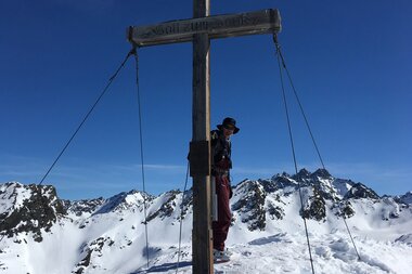 Mit 2.704 m ist das Gipfelkreuz des Hennekopfes gar nicht mal so hoch für das Silvrettagebiet mit seinen mächtigen 3.000ern. Man hat von hier aber einen unvergessliches 360°-Panorama auf die Bergwelt der Silvretta. Wer will da nicht gleich das nächste Tourenziel ins Auge fassen?