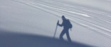 Guten Mutes stapfte ich los. Nach den ersten Höhenmetern im Schatten schafften es dann auch die ersten wärmenden Sonnenstrahlen über die Gipfel. Wie schön. Die Route ist eher unkompliziert: Ich folgte zunächst dem gesteckten Weg Richtung Saarbrücker Hütte. Nach etwa 30 bis 45 Minuten teilt sich das Tal dann am Fuße des Kleinlitzners auf. Während der Weg zur Saarbrücker Hütte nach links abbiegt, verlief meine Strecke eine weitere Stunde geradeaus auf der rechten Seite des Kromertals bis auf ca. 2450 m Seehöhe. Etwa auf dieser Höhe findet sich rechts in den felsigen Ost- bzw. Südosthängen die breiteste Öffnung (neben einer Mulde) im Kamm zum Schweizer Gletscher. Es ist gleichzeitig das steilste Stück des Aufstiegs, was mir anfangs etwas Sorge bereitete, weil ich ja alleine unterwegs war. Ein paar wenige Spitzkehren später verwandelte sich die Sorge jedoch in Vergnügen. Ich folgte der etwas verwehten aber sehr stabilen Spur vom Vortag. Zusätzlich wurde mein Aufstieg von drei Tourengehern beobachtet, deren Ziel vermutlich die Kromer Scharte war. Vielen Dank an dieser Stelle an Unbekannt! Zu wissen, dass jemand mitbekäme, falls etwas passiert, hat mir mental sehr geholfen.