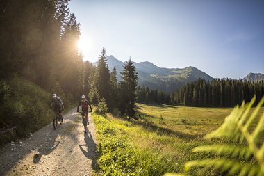 Ein Beispiel ist der Bartholomäberg. Hier sind einige offizielle (E-)Mountainbike-Strecken ausgewiesen. Allerdings sind nicht alle Wege in diesem Gebiet für den Bikesport freigegeben. Diese Einschränkungen dienen dem Schutz privater Grundstücke sowie der lokalen Wildtierpopulation. Die Einhaltung der Fahrverbote ist wesentlich, um die natürlichen Lebensräume zu bewahren und den respektvollen Umgang mit der Umgebung zu fördern. „Gerade im Herbst ist das besonders wichtig, da sich die Flora und Fauna auf den Winter vorbereiten und so wenig wie möglich gestört werden sollten“, erläutert Sebastian.