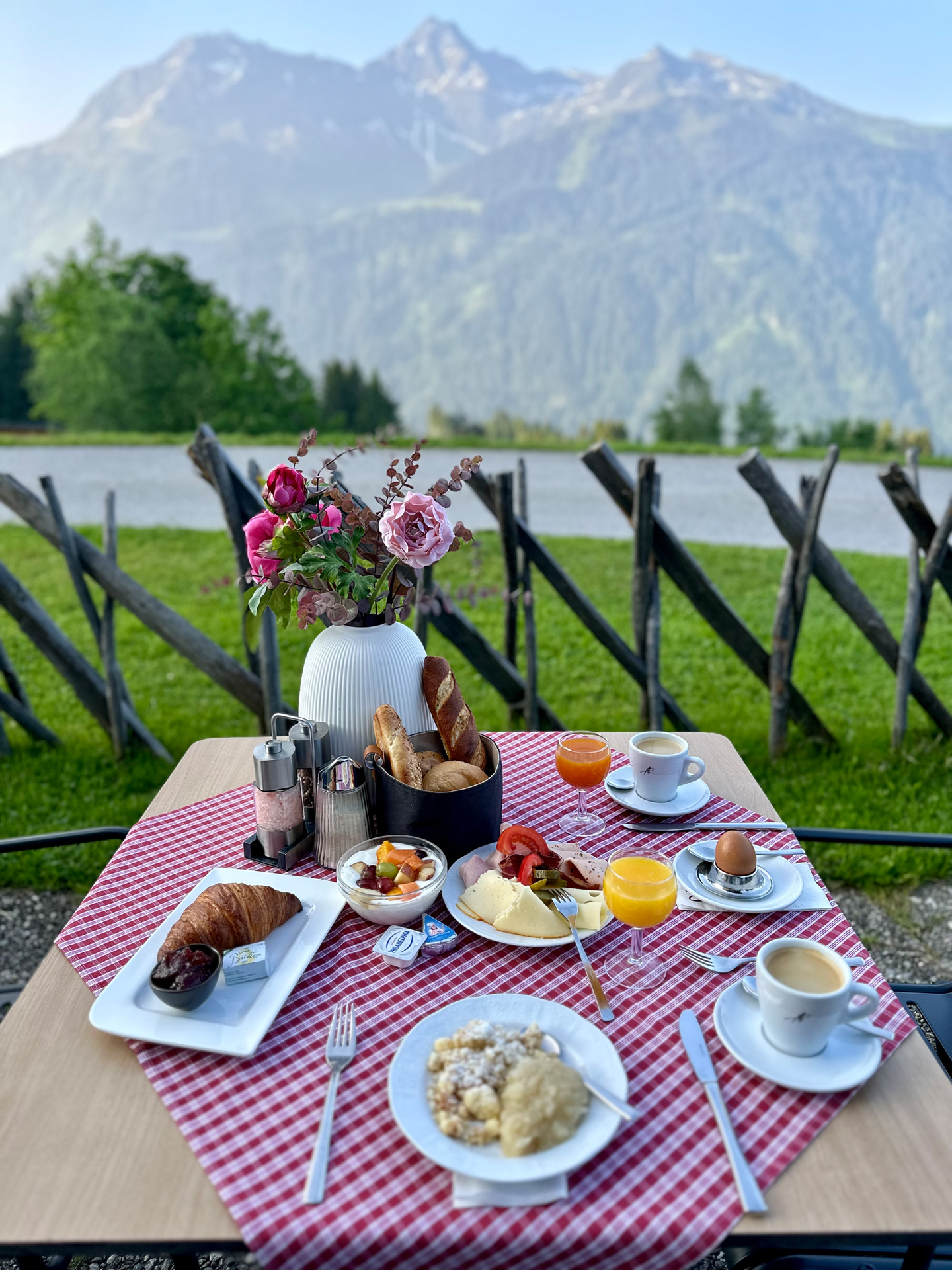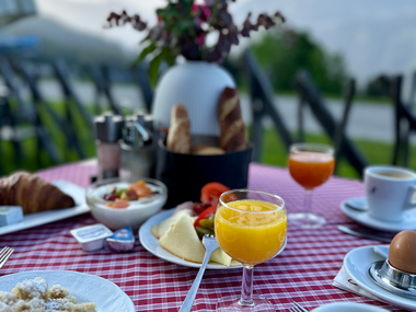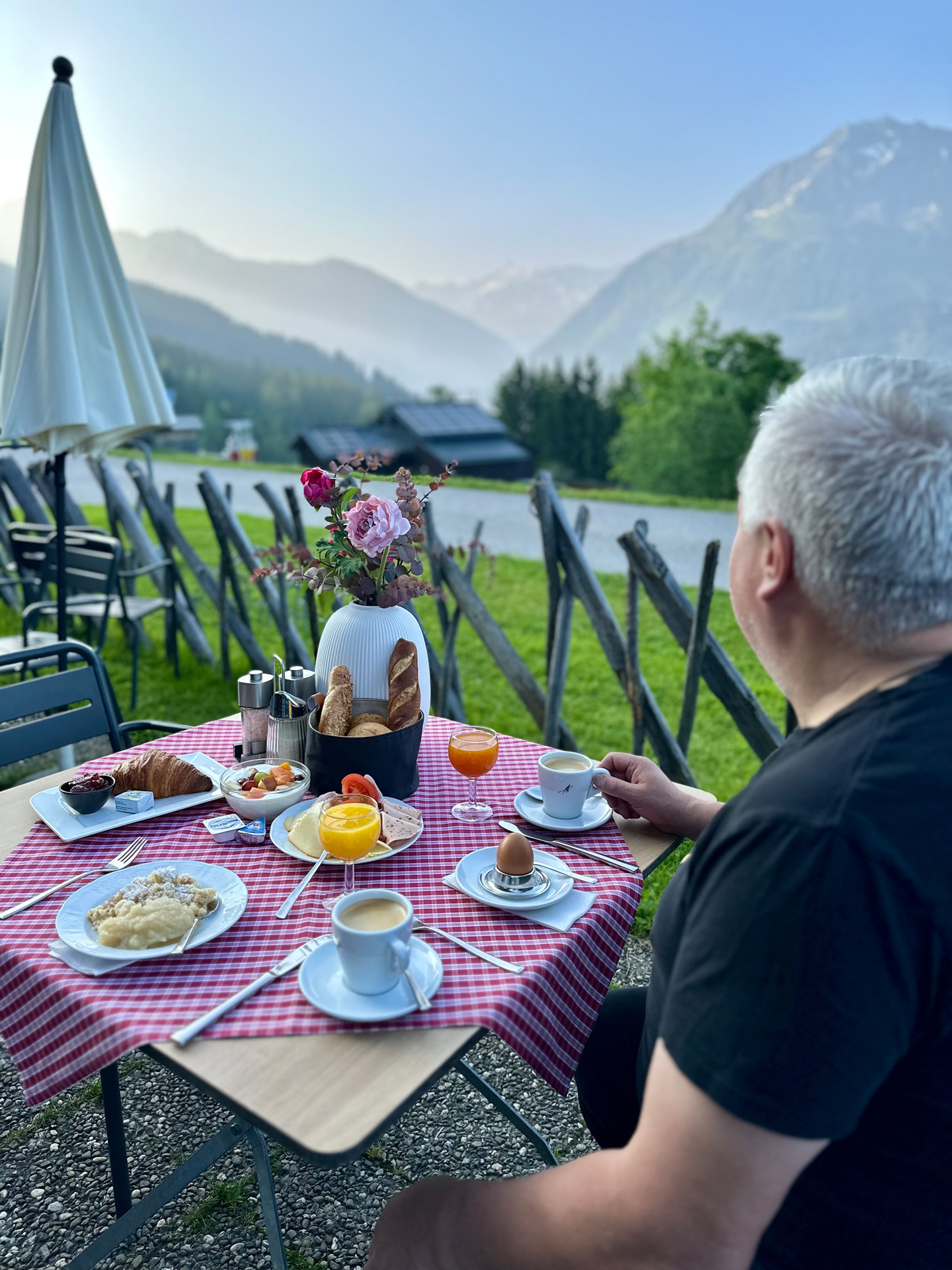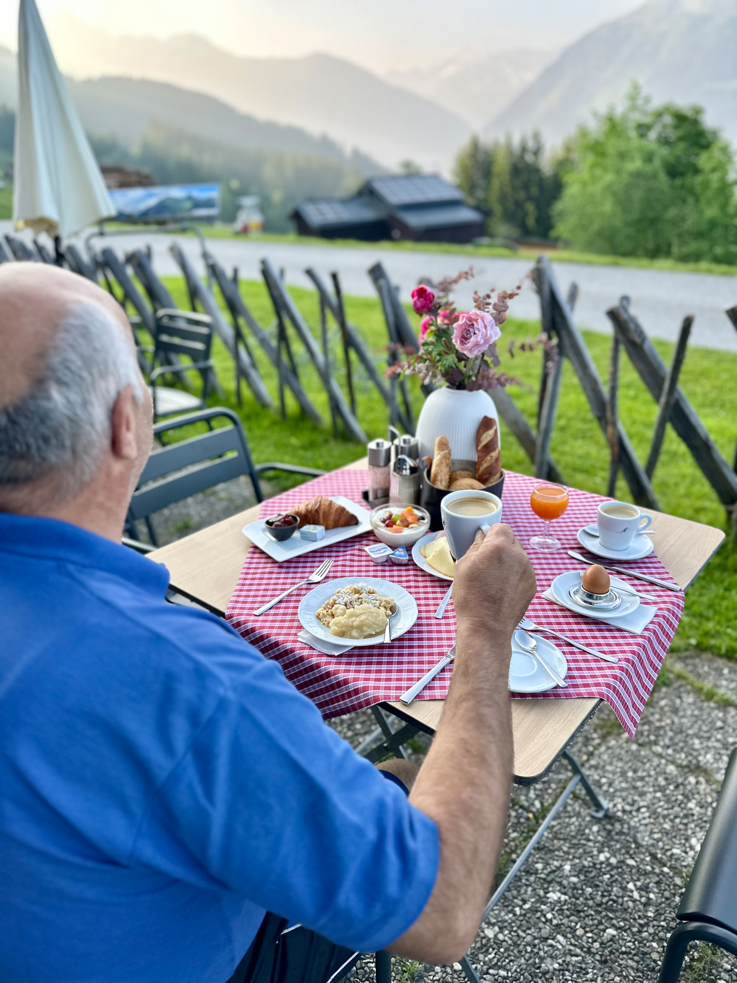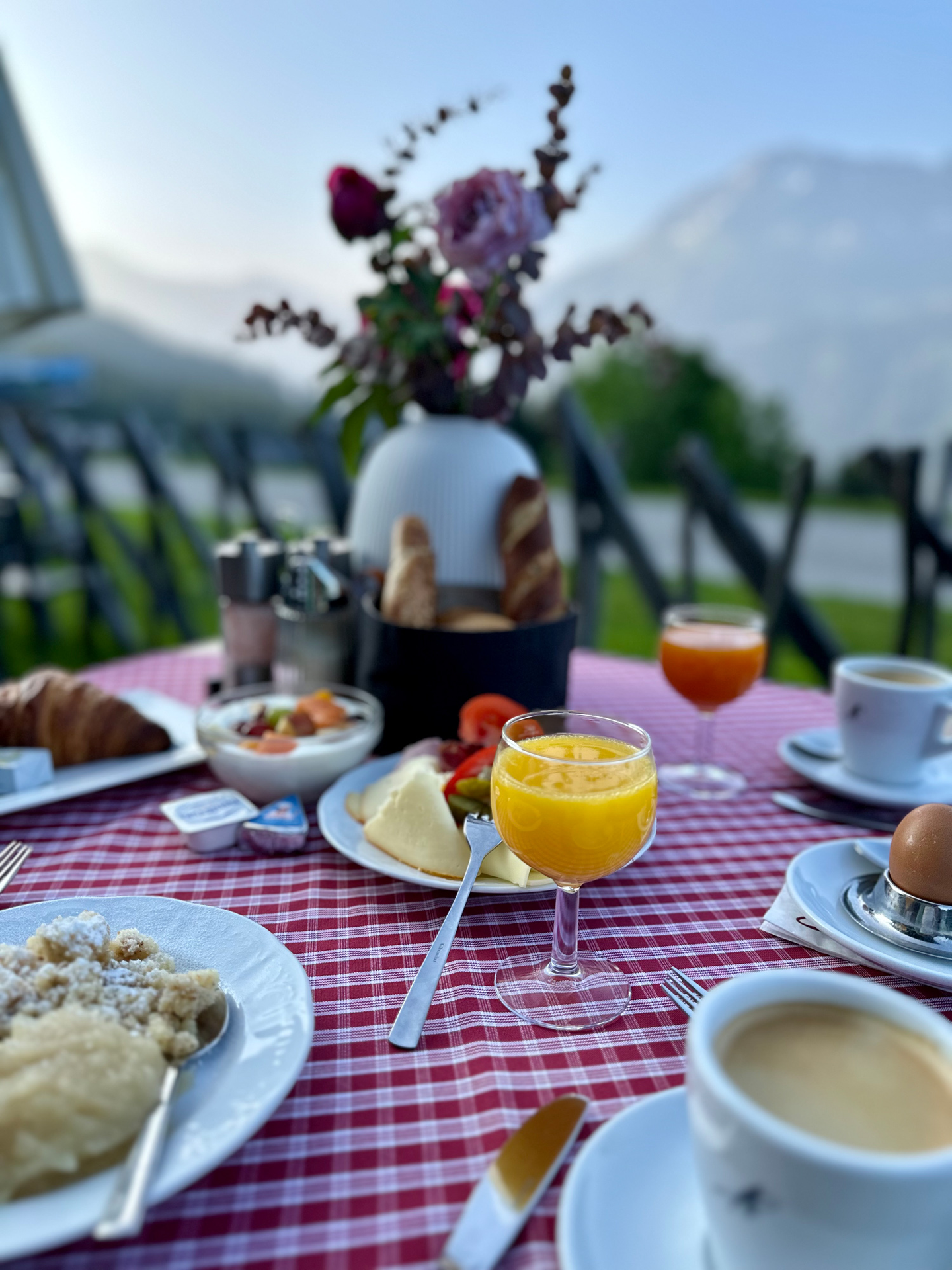 After prior registration (T. +43 5556 72290 or email), the “Montafon mountain breakfast at the Kristberg” in the old Montafon style (Montafon sura kees, Brösel (crumbs), bacon, fresh milk and butter, ...) can be booked daily from 8.00 am to 10.00 am. In sunny and dry weather, this takes place on the terrace of Panoramagasthof Kristberg with a wonderful view of the Rätikon and Verwall mountain ranges. In cold weather, the pleasant tables in our pub offer the right ambiance, panoramic view included.
