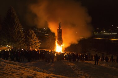 One of the oldest customs in the Montafon: on the first Sunday after carnival, the flames of the sparks blaze up to 30 meters high into the sky. The "demons of winter" are driven away and the increasing light of spring is welcomed with the burning of sparks and the swinging of torches - a ritual full of symbolism and tradition.