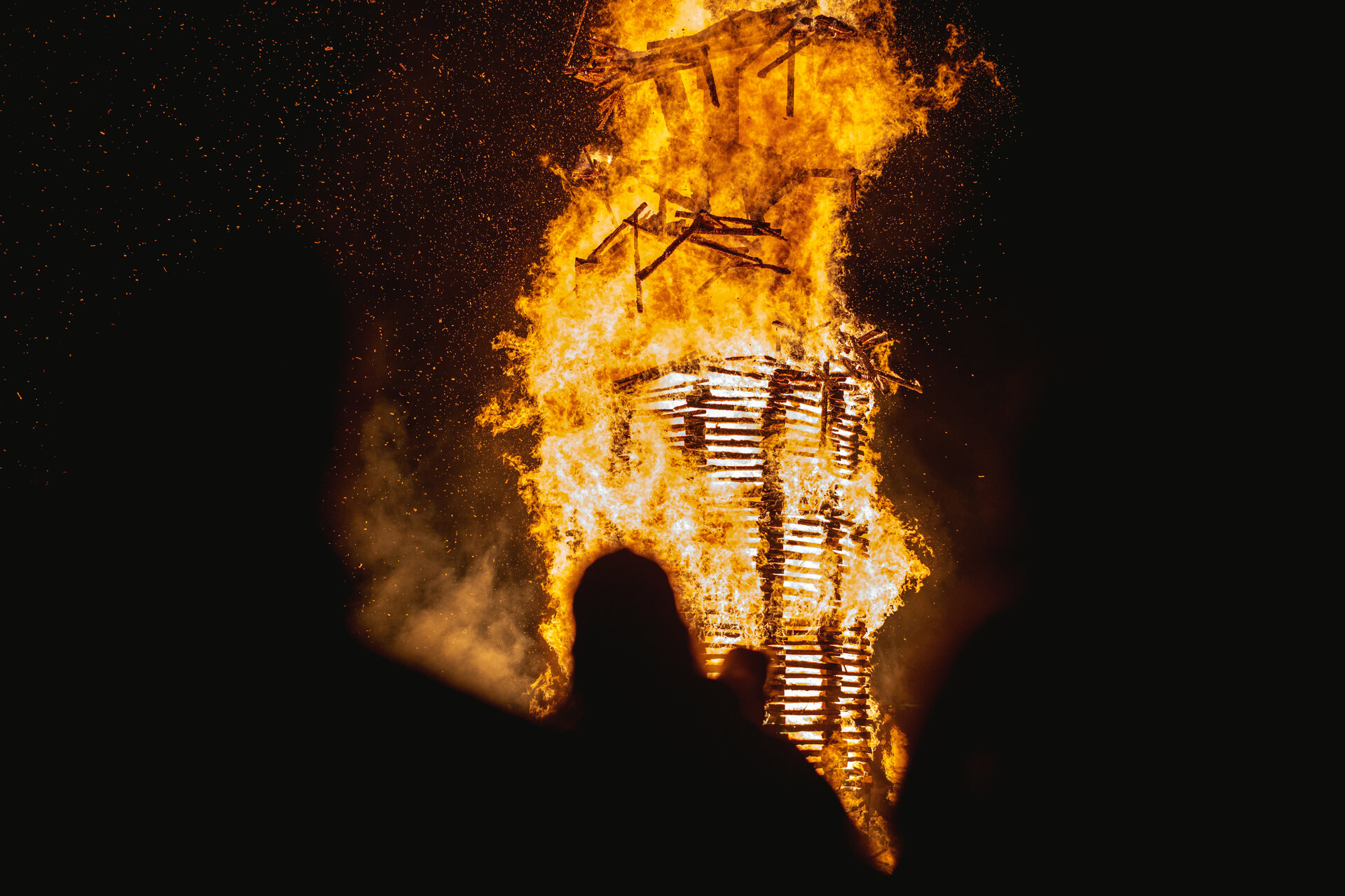 On Saturday night, a spark watch keeps an eye on things to ensure that the wooden structure is not set alight prematurely by lads from neighbouring villages. However, this traditional prank is more than just a minor offence and is now even punishable by law. -