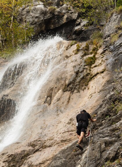 As a starting point for a variety of hikes and activities, climbing enthusiasts can head up above the village center on a spectacular via ferrata between two thundering waterfalls. After the vertical tour, animal lovers can discover a small paradise with organic free-range eggs from happy hens and organic products from the original Montafon Braunvieh cattle at the Gavadura showcase organic farm.