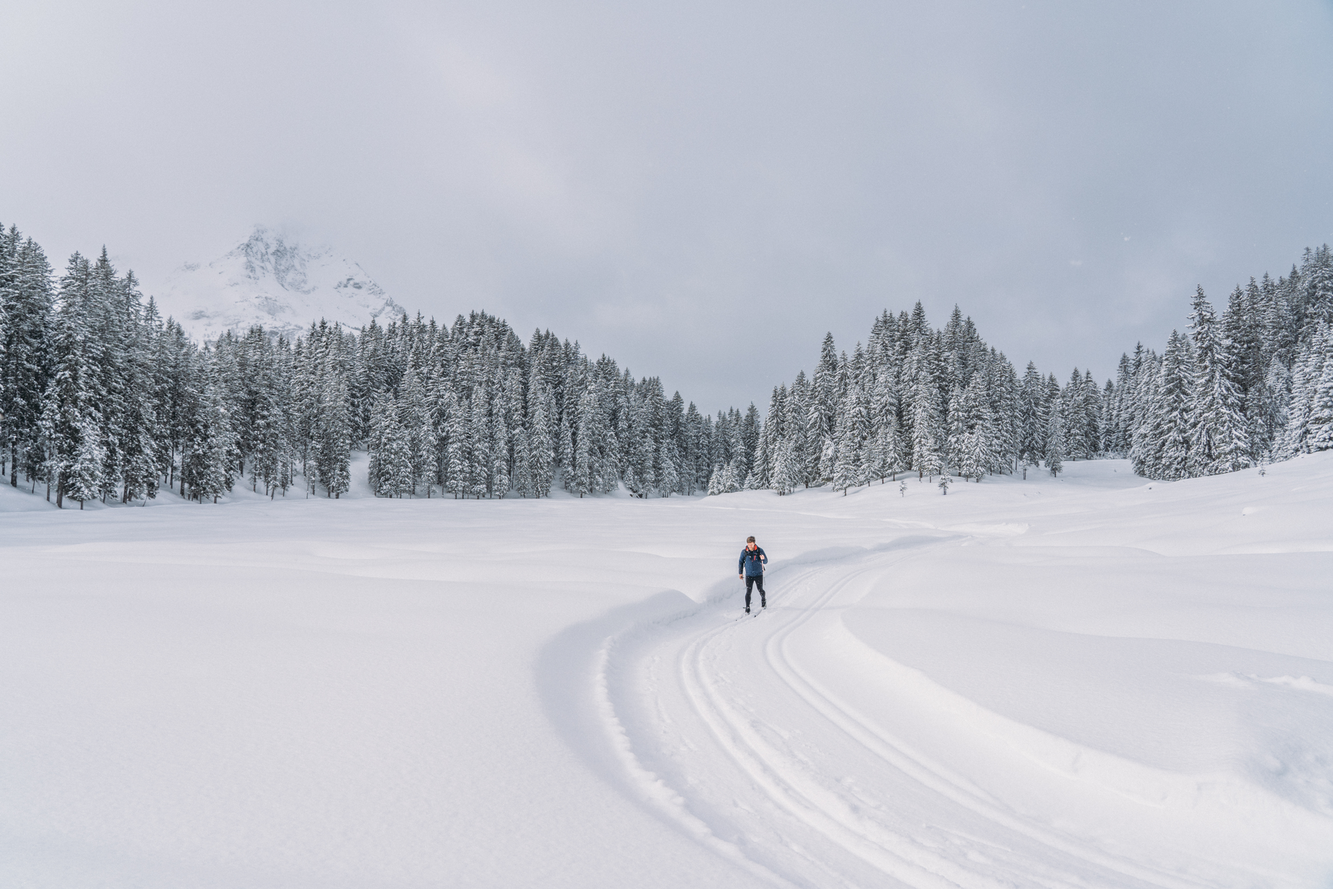 Eine herrliche Panoramaloipe, die ständig begleitet von einer traumhaften Aussicht ist. Vom Kristberg geht es über die Siebenbrünnele zum Wildried und wieder retour.