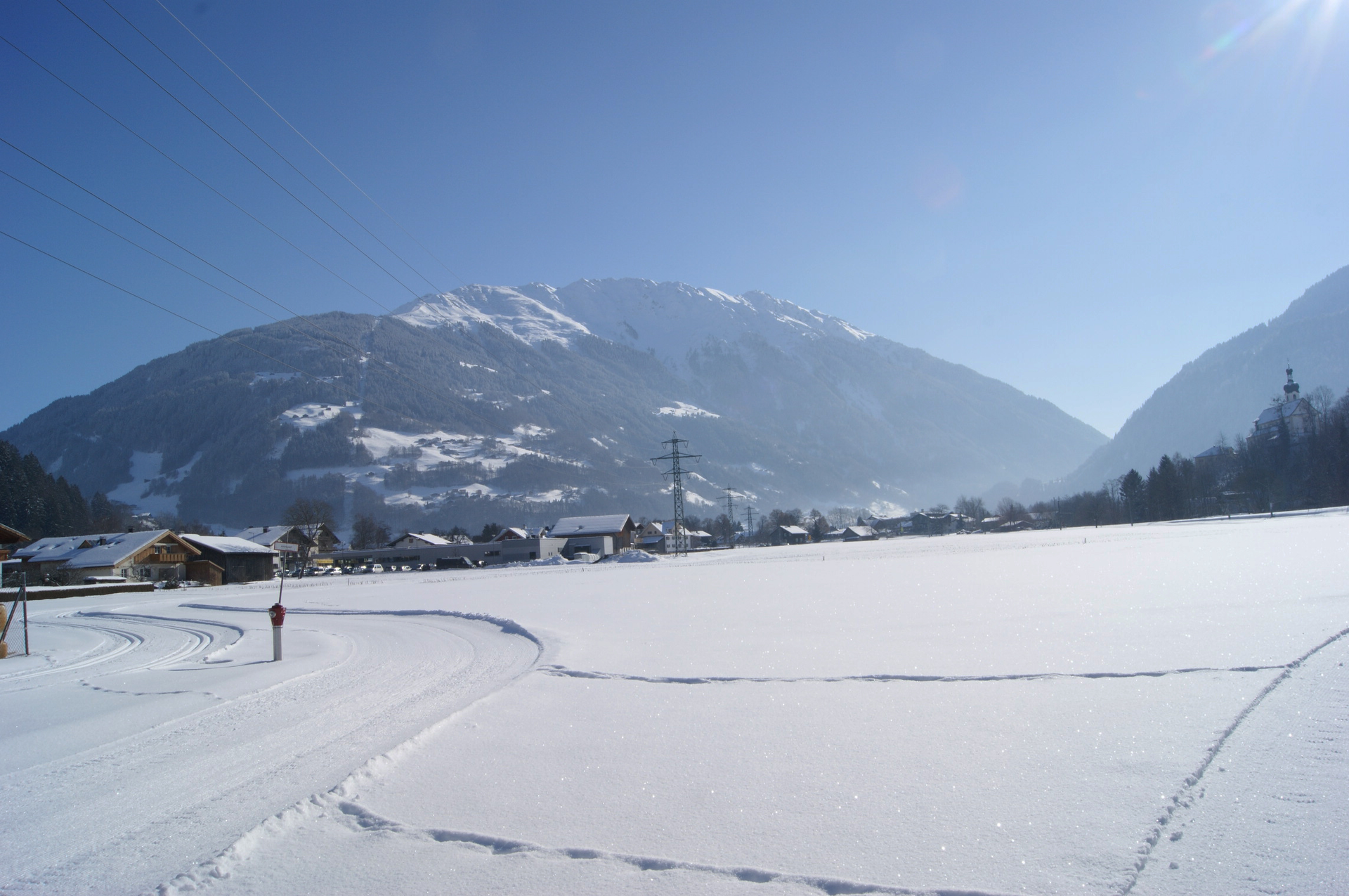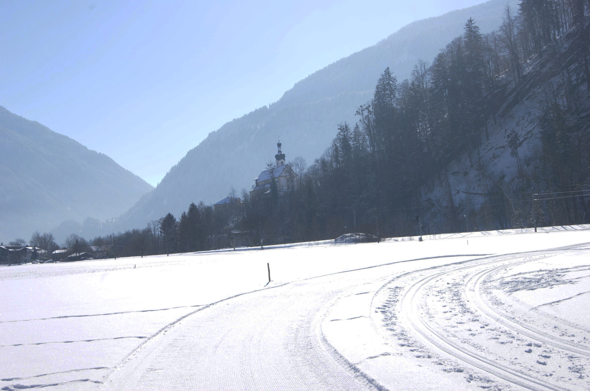 Between the railway station Tschagguns and the Shell station starts the round course . The trail leads to the right of the valley past the DIY store Bömag to Kaltenbrunnen (access via a short connecting trail from the railway station Kaltenbrunnen possible ). Returns , the circular along the railway tracks of Montafonerbahn , past the biomass cogeneration plant to the starting point .