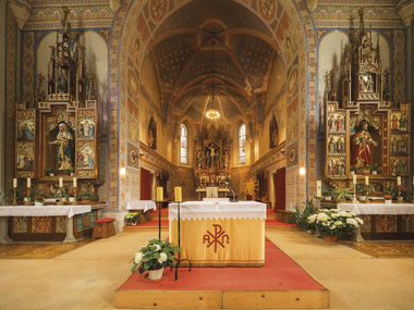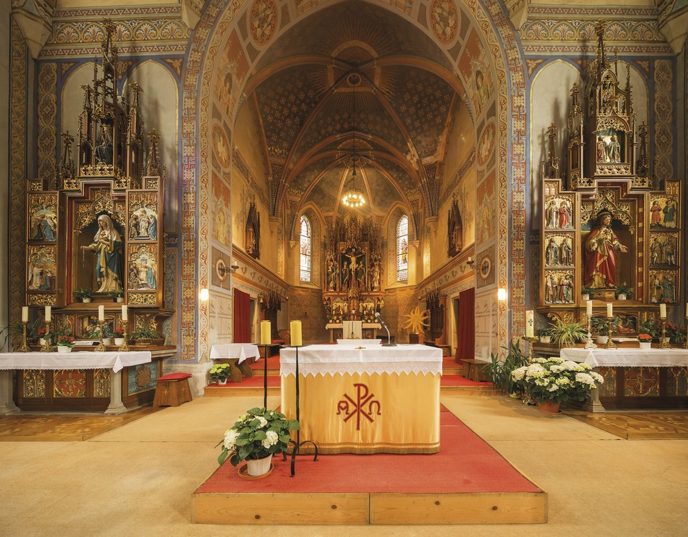 When the old 14th century church became too small, it was demolished in 1892 and the foundation stone for the new church laid on 3 July 1892. It was built in the New Gothic style from plans by Vienna’s master cathedral builder Freiherr von Schmidt. The festive consecration was held on 12 October 1893 by the suffragan bishop Dr. Zobl. The Silbertal parish church was painted by the artist Hans Martin from Munich in 1896.