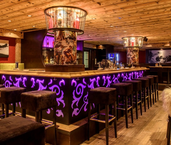 Gemütliche Bar im Untergeschoß der Gargellner Stoba