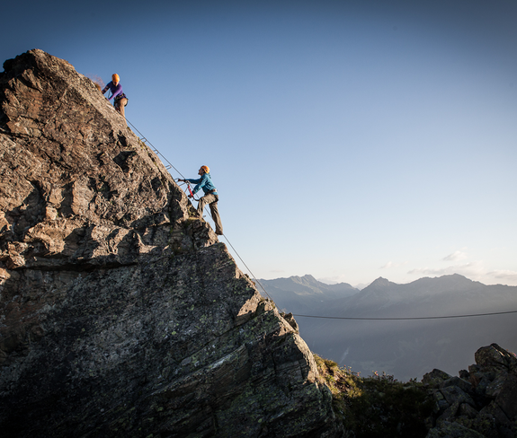 Despite the short route and moderate difficulty, this via ferrata is a rewarding destination for the whole family. After a short approach, you climb a few altitude meters with a slight incline along the ridge. Fantastic views down and a unique panorama of Madrisella, Heimspitze and Versettlaspitze open up. Due to its almost horizontal line, this via ferrata can be climbed in both directions.