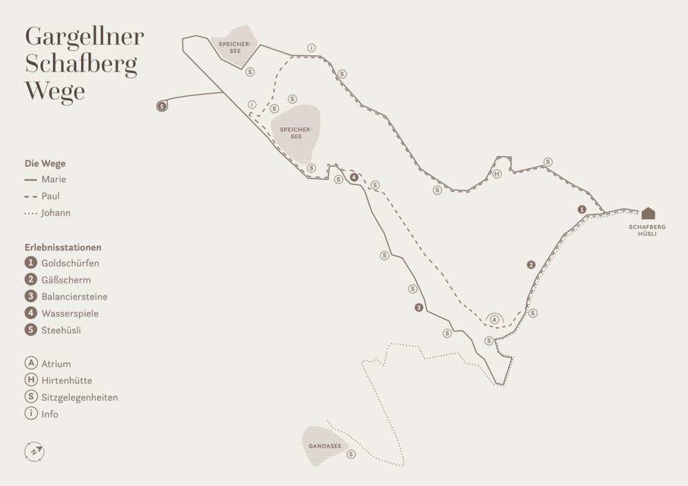 Der Weg: Die Freude an der Bewegung. Das Spiel in der Natur. Auf dem Entdeckerpfad dürfen Klein und Groß den Schafberg spielerisch erkunden. Tiere wollen gestreichelt und spannende Stationen entdeckt werden. Der schmale Pfad verläuft teilweise parallel zum Flanierweg - ideal für kleine Wanderer.