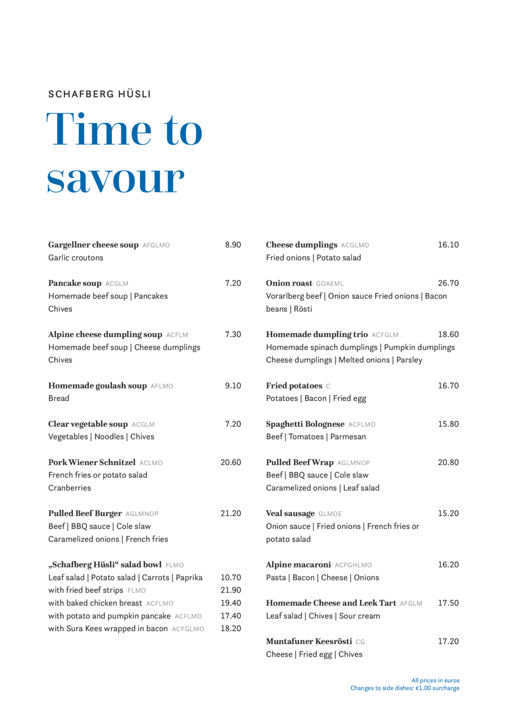 Take a look at our menu, the Schafberg Hüsli team will be happy to answer any questions you may have.