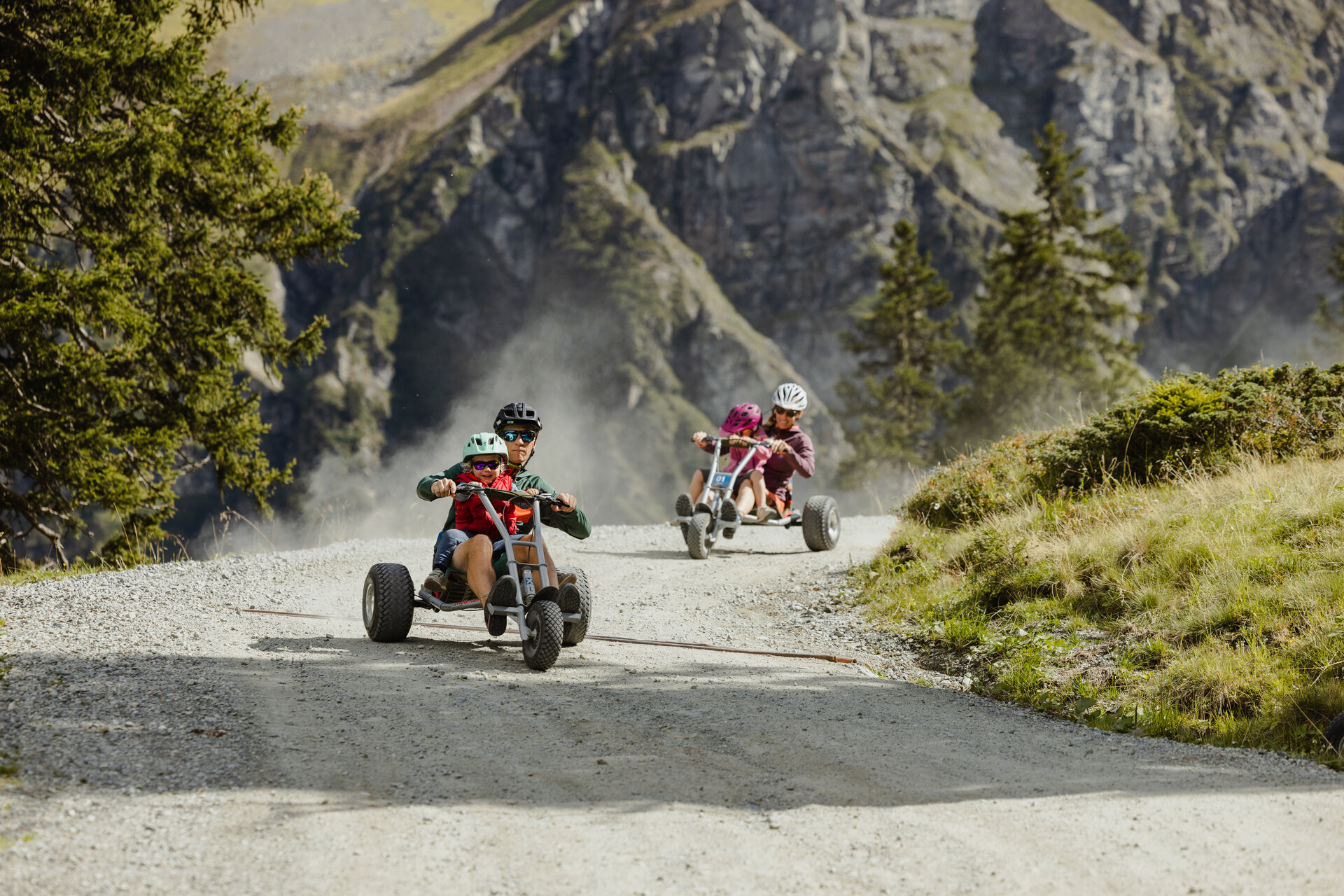 You've hiked all day, stopped off at the Schafberg Hüsli, your legs are tired and you don't necessarily want to take the cable car down into the valley? Then the mountain cart is just the thing! Almost like a go-kart - only on 3 wheels and without a motor - you ride from the mountain station along the forest paths down into the valley. Safe driving fun is guaranteed!