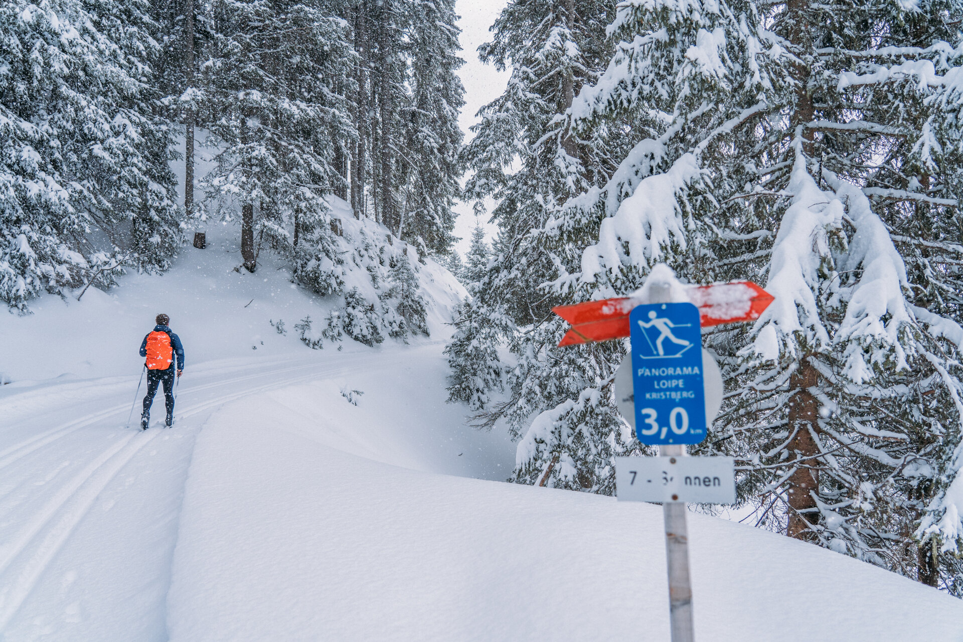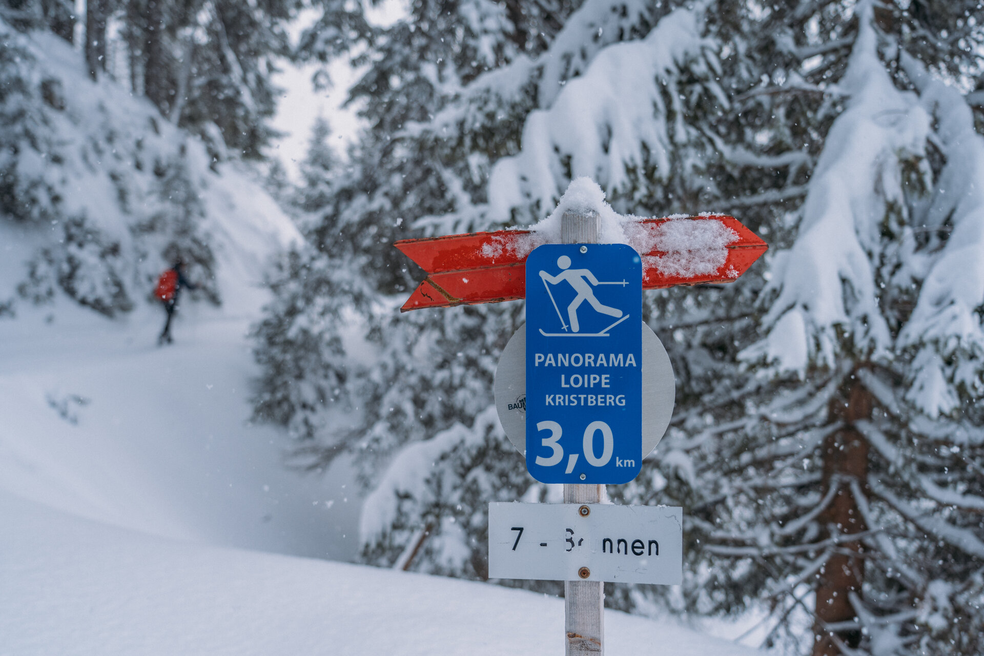 Der Einstieg in diese täglich frisch gespurte und 11 km lange Panoramaloipe (nur klassischer Stil) ist bei der Bergstation der Montafoner Kristbergbahn. Die Bergstation befindet sich direkt an der Loipe.