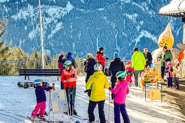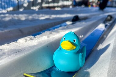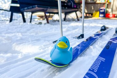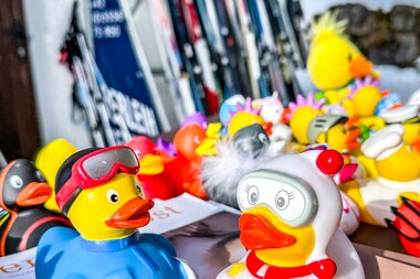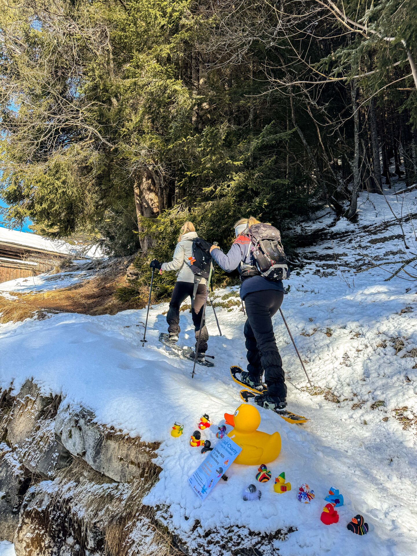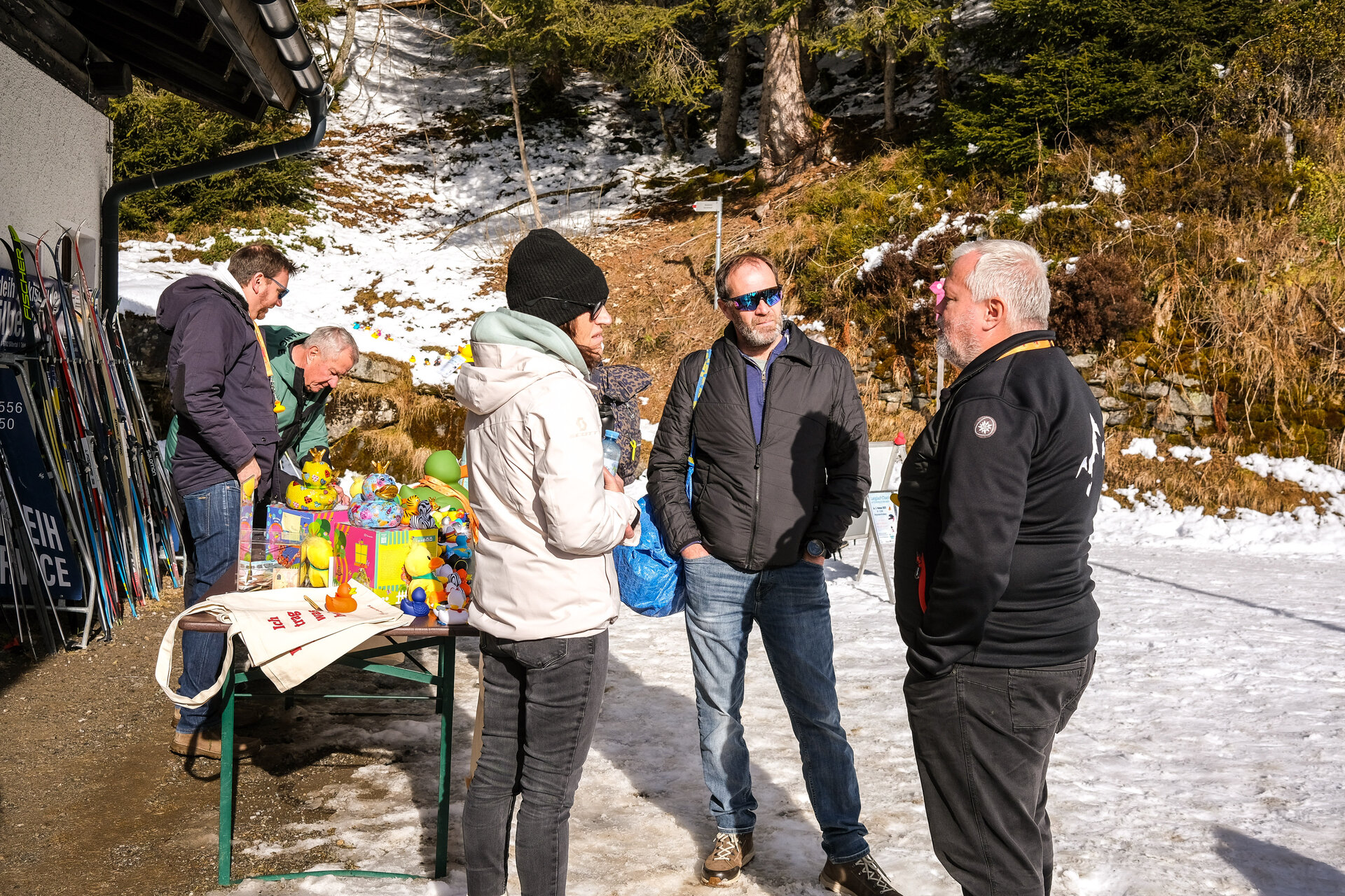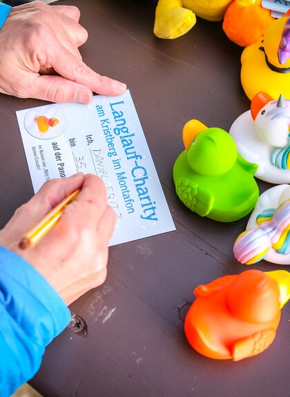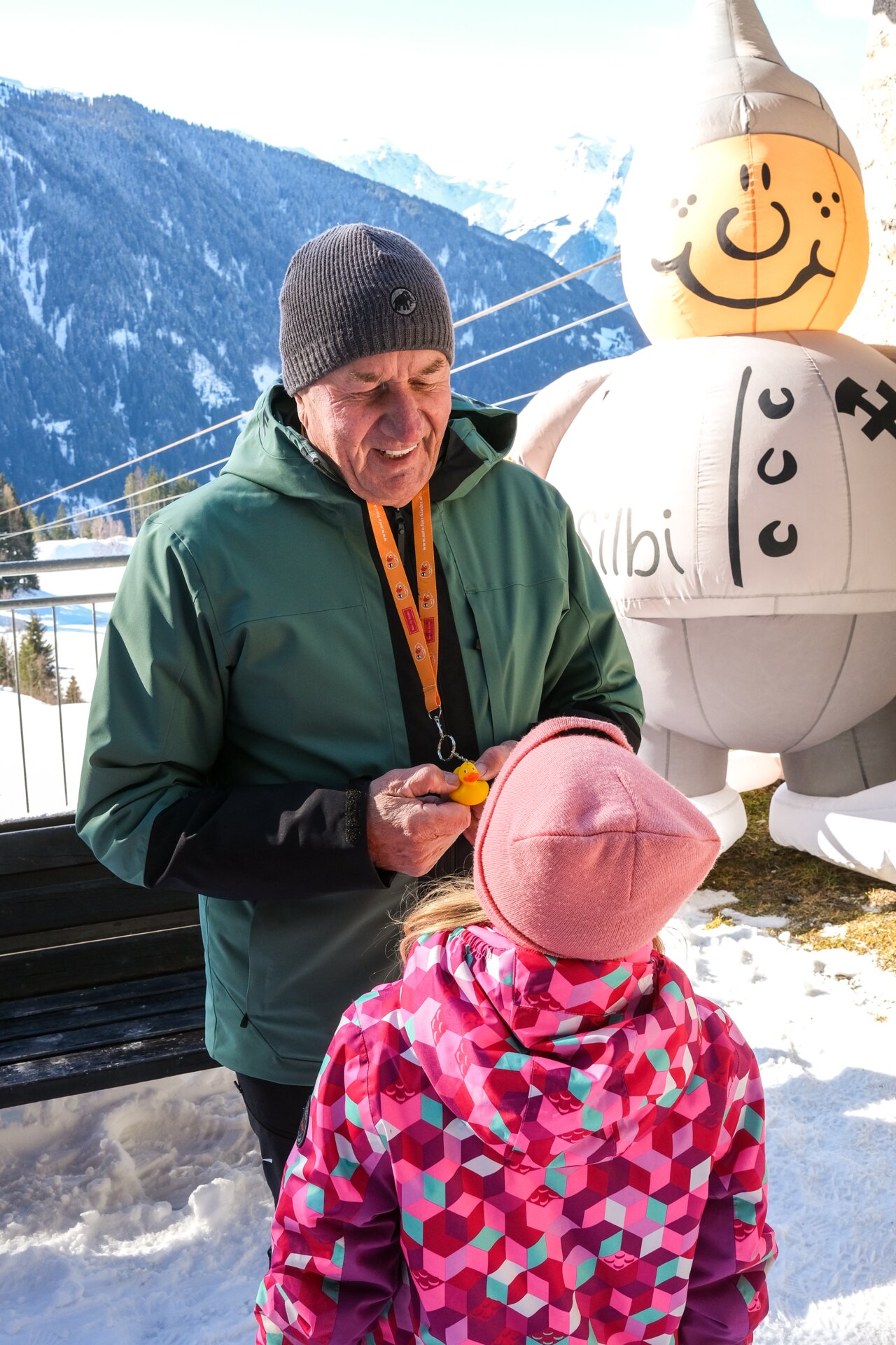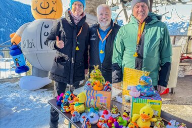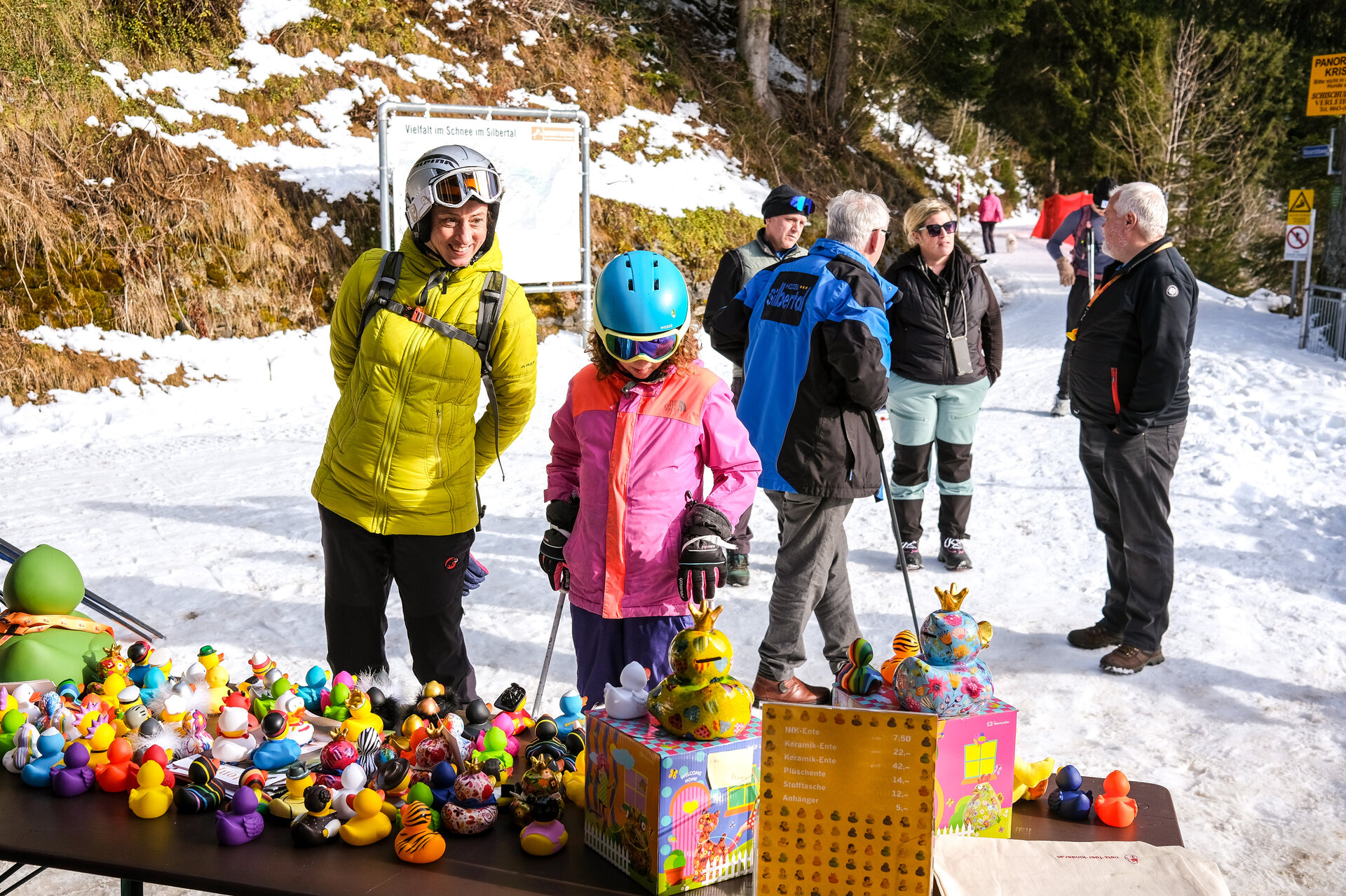 Bei der Bergstation der Montafoner Kristbergbahn war das Team vom „Netz für Kinder“ und Jürgen Zudrell stationiert. Hier gab es neben der "kostenfreien" Langlaufausrüstung auch verschiedene Tee´s, Säfte, Wasser und jede Menge bunte "Enten", das Symbol vom „Netz für Kinder“ (Ente gut alles gut :)).