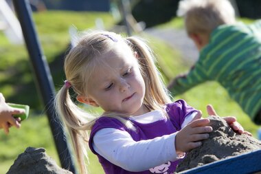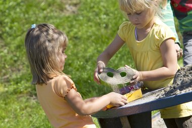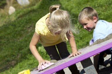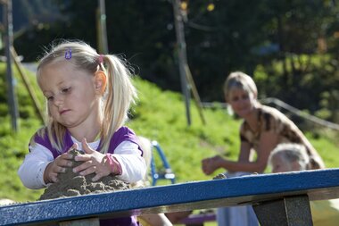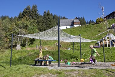 Am Ende des Silberpfads bei der St. Agatha Knappenkapelle und unterhalb des Panoramagasthofs Kristberg heißt die Silberspielwelt mit vielen Attraktion die Kinder willkommen. Unterschiedliche Spielelemente machen den Bergbau hier für alle Sinne erlebbar und lassen Kinder in die Arbeitswelt der Knappen eintauchen.