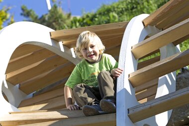 Die über 1.000m² große „Silberspielwelt“ mit der Holzkugelbahn