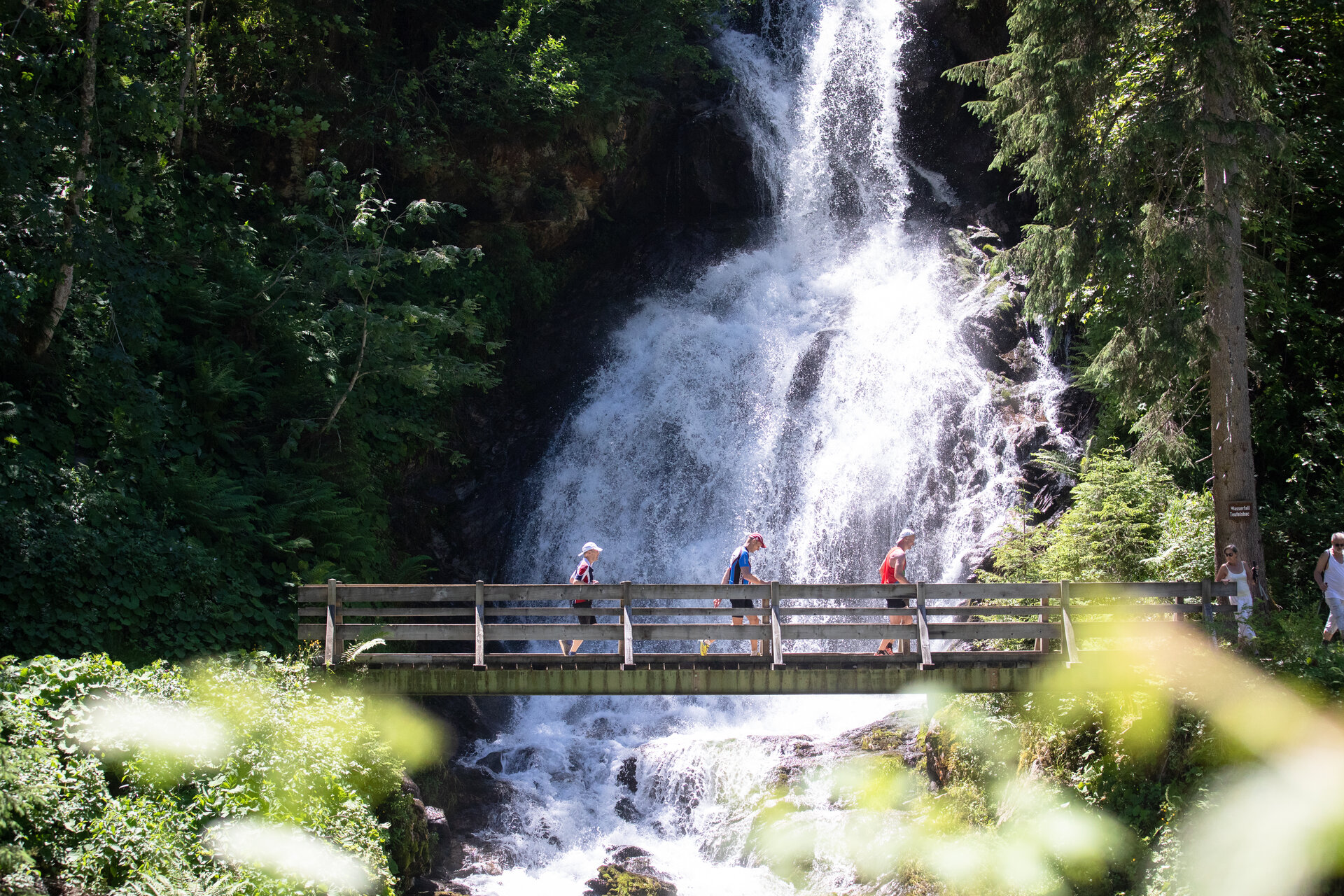 Auf diesem Teilstück wurde den Läufern alles abverlangt und den inneren Schweinehund habe ich mehrmals verflucht – viele Gedanken gingen hier durch den Kopf. Nach einer guten Stärkung bei der Verpflegungsstation mit vielen motivierenden Worten der Helfer und auch unter den Läufern ging´s nun zum Wildried, einem schönen Aussichtspunkt ins Silbertal bis zur Abzweigung nach dem Kneippbecken bei den „Sieben Brünnen“ über einen alten Wirtschaftsweg zur Stieralpe. Hier wurden wir, wie bei der vorigen Station mit einem Wasserregen, den allen Läufern wohl bekam, in Empfang genommen.