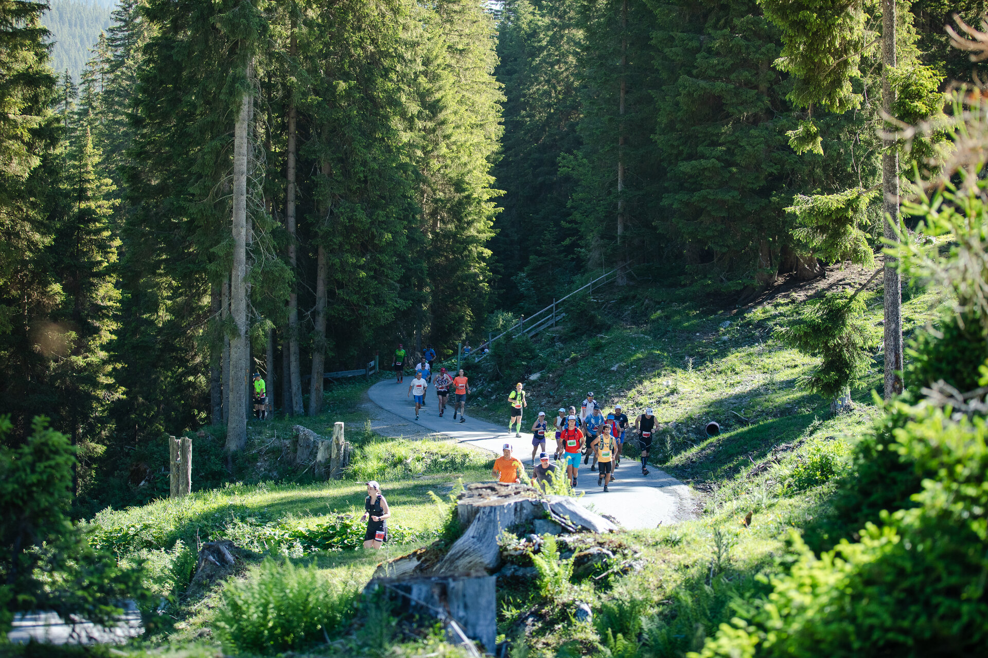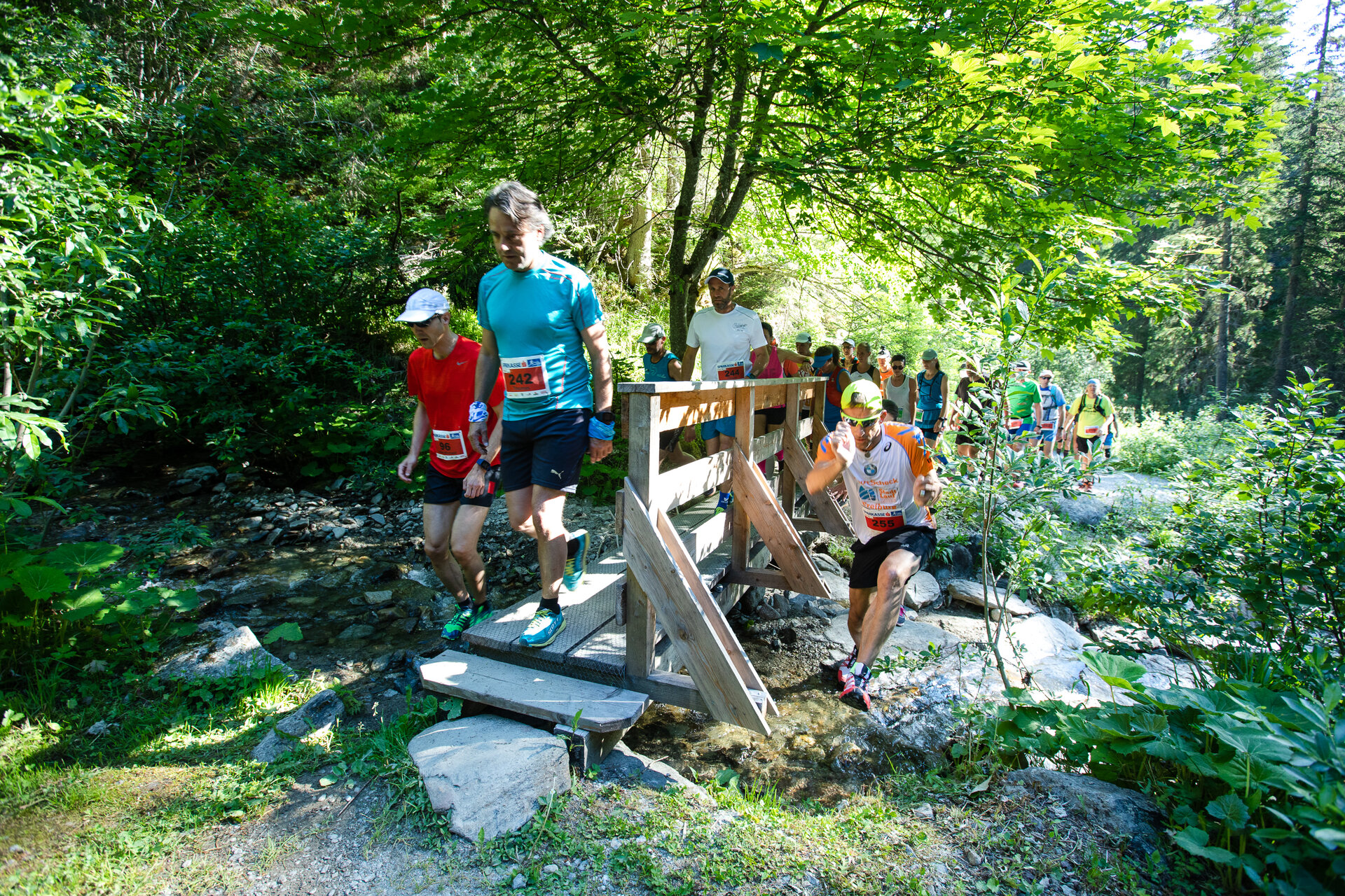 In St. Anton am Arlberg holten wir uns gleich die Startnummern. Das Drumherum in den Gassen, die positive Stimmung unter den Läufern, die immer gut gelaunten und motivierten Moderatoren Martin und Peter, das perfekte Laufwetter und das Ziel im Silbertal vor Augen ließ die Nervosität steigen. So ging´s nach dem Start gemütlich die ersten paar Kilometer bis zur Schluchtstrecke, wo ein schmaler Pfad die Teilnehmer etwas zur Vorsicht aufforderte und das Tempo sehr gemütlich war. Hier wurde auch noch viel geredet und gelacht. Bei der ersten Verpflegungsstation war sehr viel Betrieb und so wurde diese von mir ausgelassen, mit der Hoffnung bei der nächsten etwas zu bekommen. Was dann auch der Fall war. Die Temperatur war eigentlich perfekt, nicht zu warm und doch schön dem kühlen Bach entlang bis zu den nächsten Stationen. Es war für mich persönlich auch das erste Mal das Schönverwalltal zu durchlaufen und auch zu bewundern.