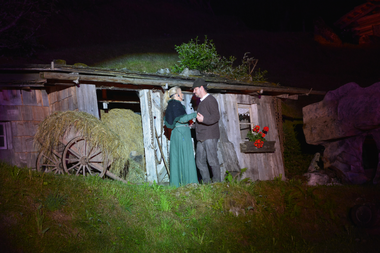 Nachdem wir die besten Plätze in der ersten Reihe fußfrei zugewiesen bekamen, waren wir nicht nur dabei, sondern mitten drin, als die Schauspieler loslegten. In gekonnter Weise und sehr professionell bekamen wir tolle Szenen präsentiert: vom Dorfleben, von der kargen Lebensweise unserer Vorfahren, von Liebe und Leid, von der Magie eines geheimnisvoll agierenden, südländischen Peppino, der bei einigen Bewohnern für Aufregung und Misstrauen sorgt. Andere wiederum bewundern ihn, geben ihm sogar Kost und Logis gegen gute Bezahlung. Es gibt ein gutes Ende, die Liebe siegt, der Geldregen kommt im richtigen Augenblick und der tosende Applaus bricht los. Gegen 23:00 Uhr ist das Spektakel mit großartigen Licht- und Toneffekten dann zu Ende.