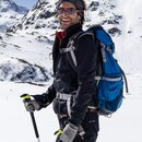In dem leicht zugänglichen Gelände entdecken wir schnell Tierspuren im Schnee. Catharina macht uns darauf aufmerksam, dass diese von einem Birkhuhn stammen könnten, die ihren Unterschlupf in kleinen Schlupflöchern nahe freiliegender Gebüsche und Sträucher aufsuchen, um bspw. die Samen der heimischen Latschenkiefer einzusammeln. Nachdem wir einmal die derzeit unbefahrene Silvretta-Hochalpenstraße überqueren müssen, wandern wir nun in der prallen Sonne, direkt unterhalb eines Hanges. Linkerhand sehen wir eine Herde mit Gämsen. Nicht unweit von der Stelle weilt sogar ein Steinbock, der uns mit seinem massiven Geweih überrascht und für Staunen sorgt.