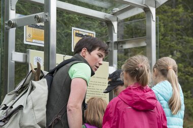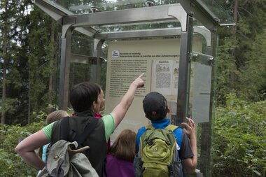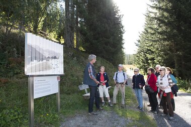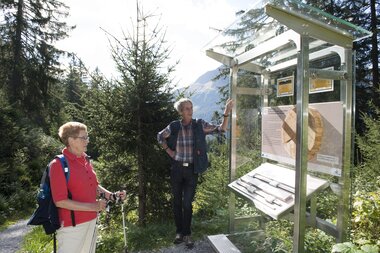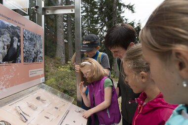 Immerse yourself in the history and traces of the mining era of the Montafon with our culture and history guide Monika. The 12 partly interactive stations of the Silver Trail show the various archaeological methods from the bone work of the digging archaeologists to the high-tech laboratory of the scientists. The topic is explained in a comprehensive and multifaceted, yet easily understandable way. Each of the stations forms a piece of the puzzle that fits into the overall picture of archaeological work at the end of the tour.