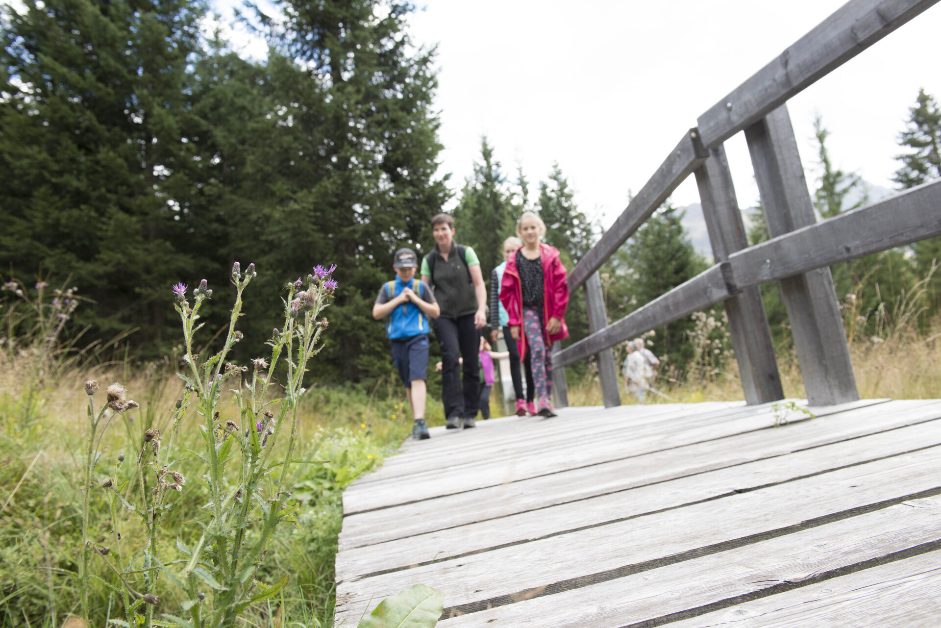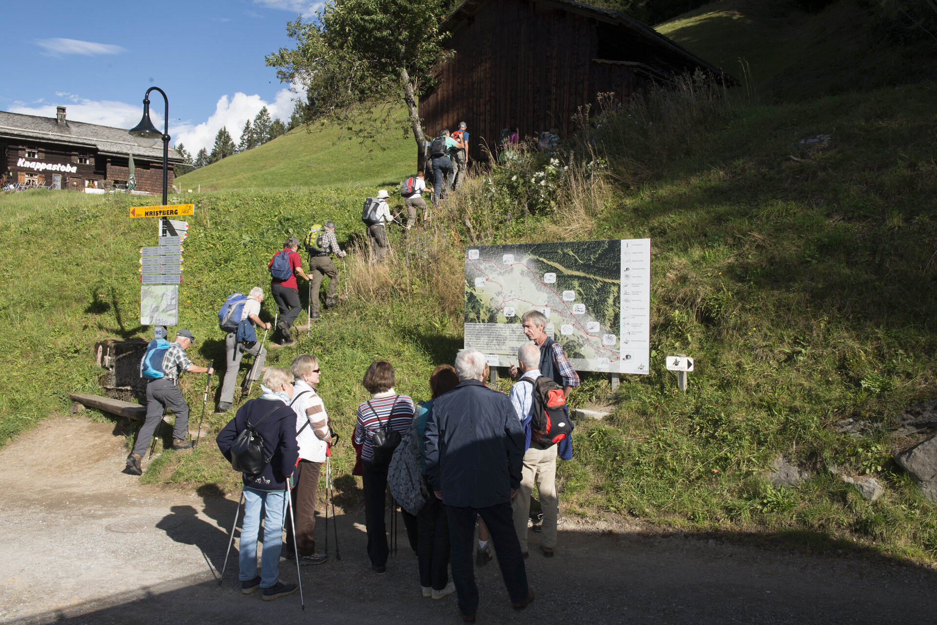 The meeting point is at 9:55 am (ascent at 9:45 am) at the mountain station of the Montafon Kristbergbahn, where Monika will welcome you.