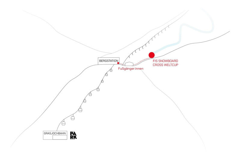 The FIS Snowboard Cross World Cup takes place in the Silvretta Montafon ski area, near the Grasjoch Bahn mountain station. We recommend taking the Grasjoch cable car.
