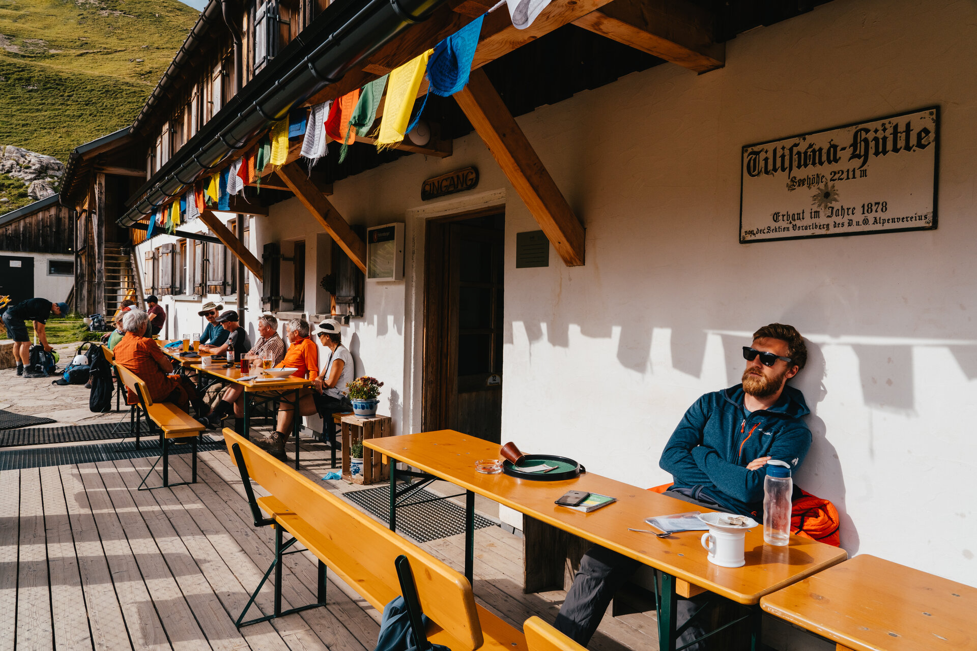 „Wir verzeichnen rund 6.000 Nächtigungen im Sommer, schon das dritte Jahr in Folge. Und nochmal so viele Tagesgäste“, sagt Markus Jankowitsch zufrieden, seit 2018 Pächter der Tilisunahütte. Die liegt auf 2.211 Meter Höhe im Kalk des Rätikon, unterhalb der mächtigen Sulzfluh. Im Jahr 1878 von der Sektion Vorarlberg erbaut, schaut die „Tilisuna“ auf eine reiche Historie. Als Hütte der Kategorie I zählt sie zur hochalpinen Klasse, per Definition der Alpenvereine also eine Schutzhütte in extremer Höhe, die ihren Charakter als alpiner Stützpunkt bewahrt hat, ohne mechanische Hilfen wie Lifte und Seilbahnen erreichbar ist, mit Zustiegen von mindestens einer Gehstunde. Auch eine schlichte Ausstattung und ausreichende Verköstigung gehören zu dieser Kategorie.